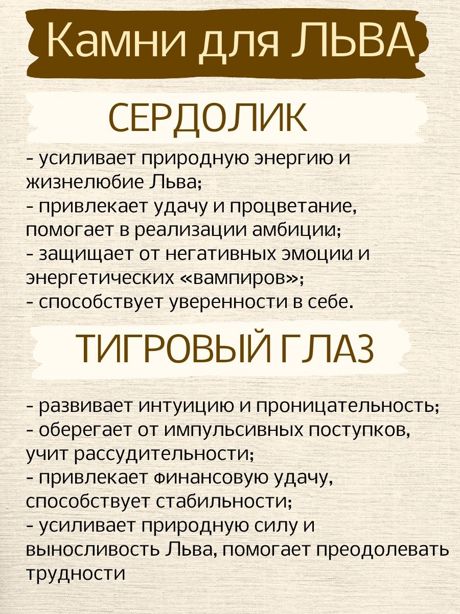 - усиливает природную силу и выносливость Льва, помогает преодолевать трудности;