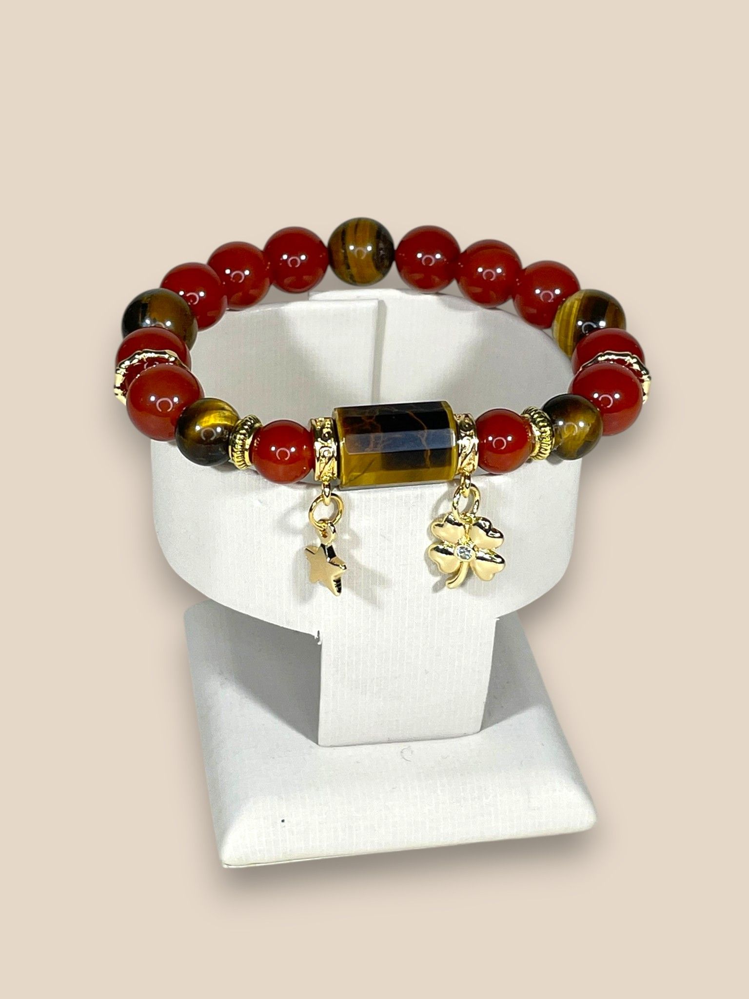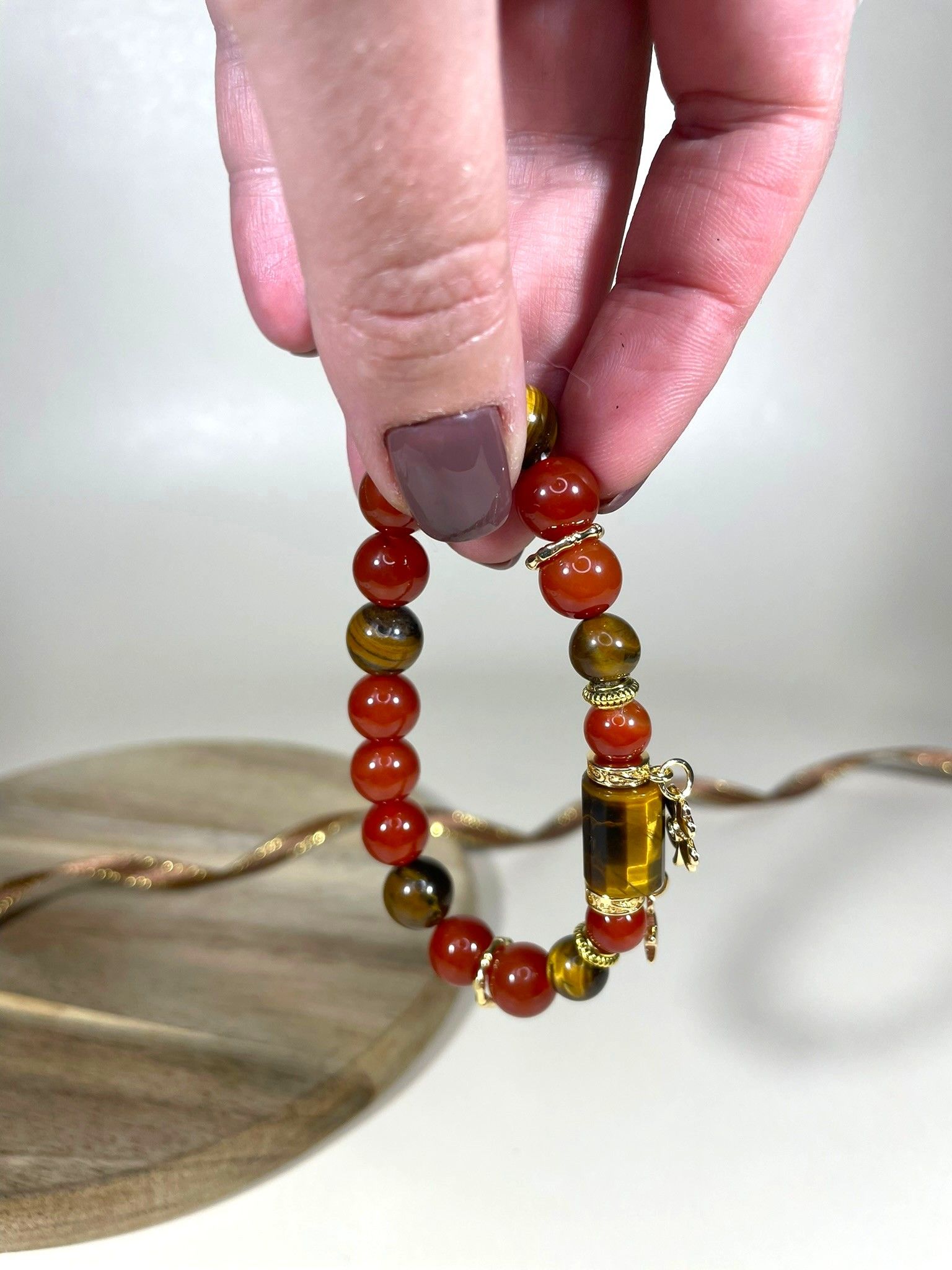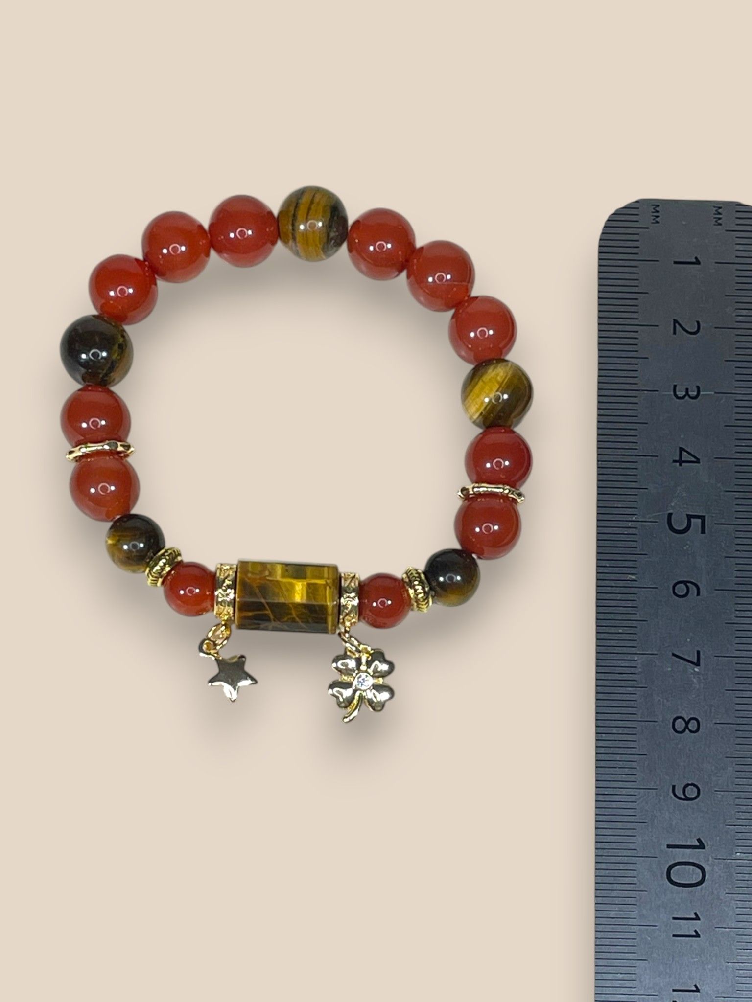 Ищете аксессуар, который подчеркнёт вашу царственную натуру? Представляем стильный браслет для Льва, выполненный из натуральных камней — сердолика и тигрового глаза. Этот браслет не только дополнит образ, но и станет вашим личным талисманом!