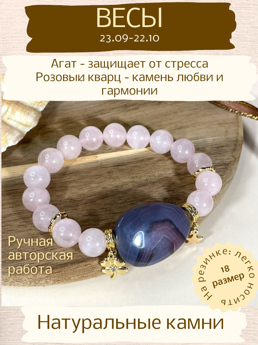 - Камни: изысканное сочетание серого агата и нежного розового кварца.