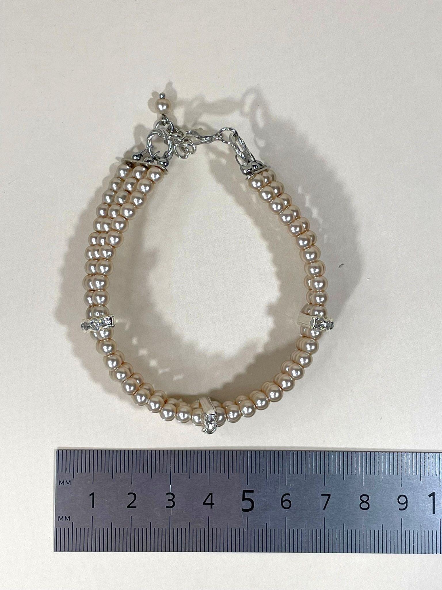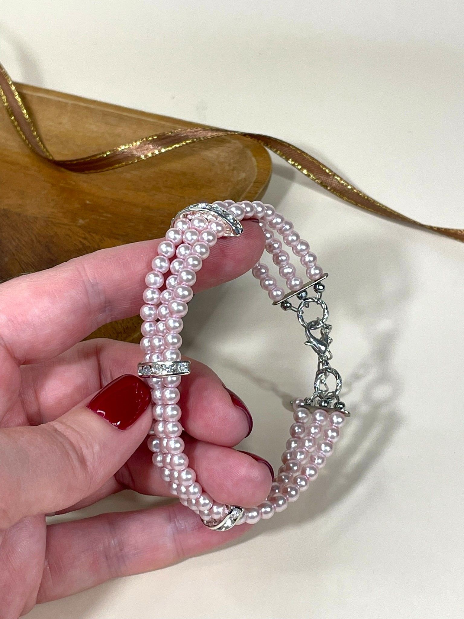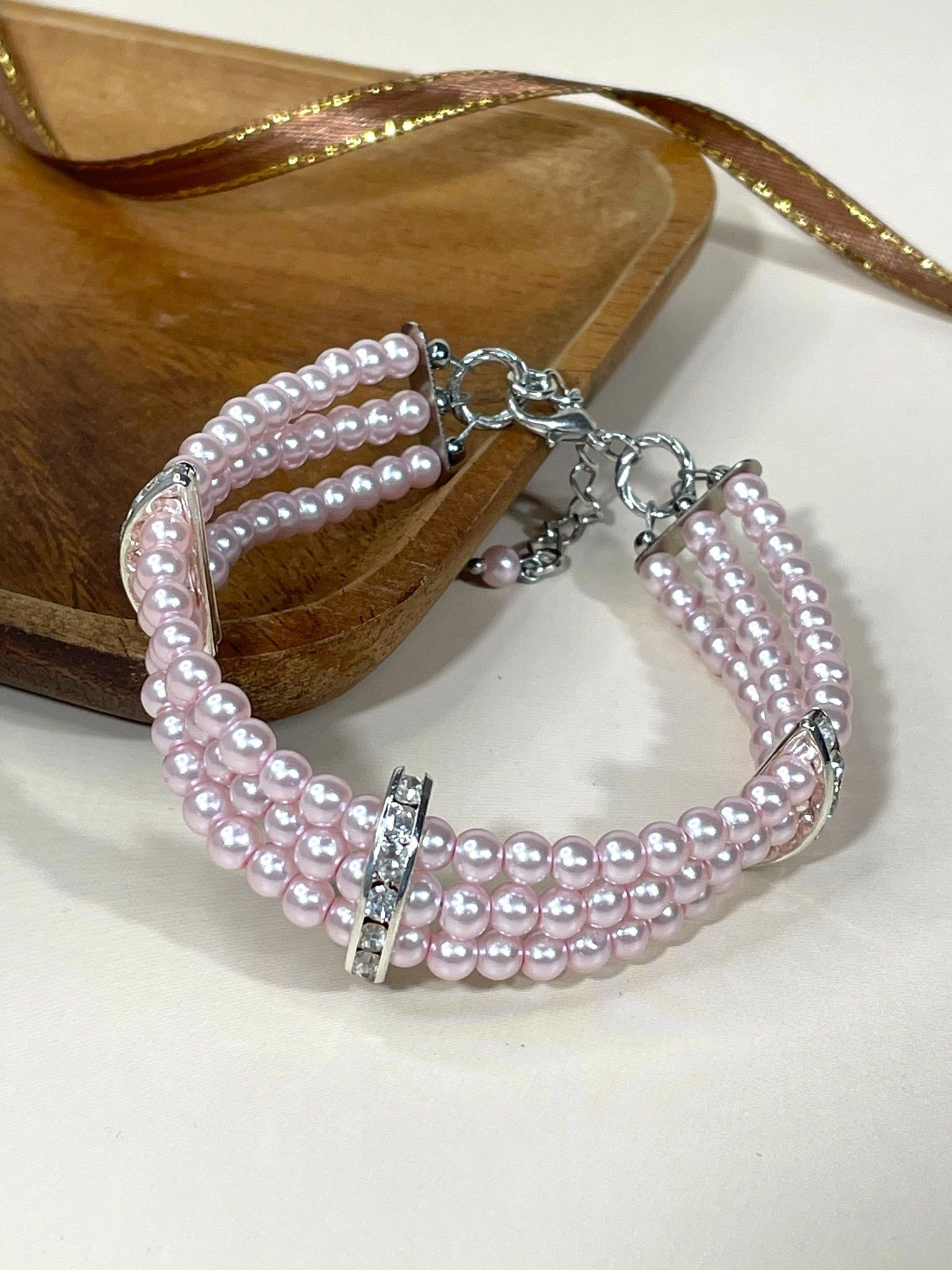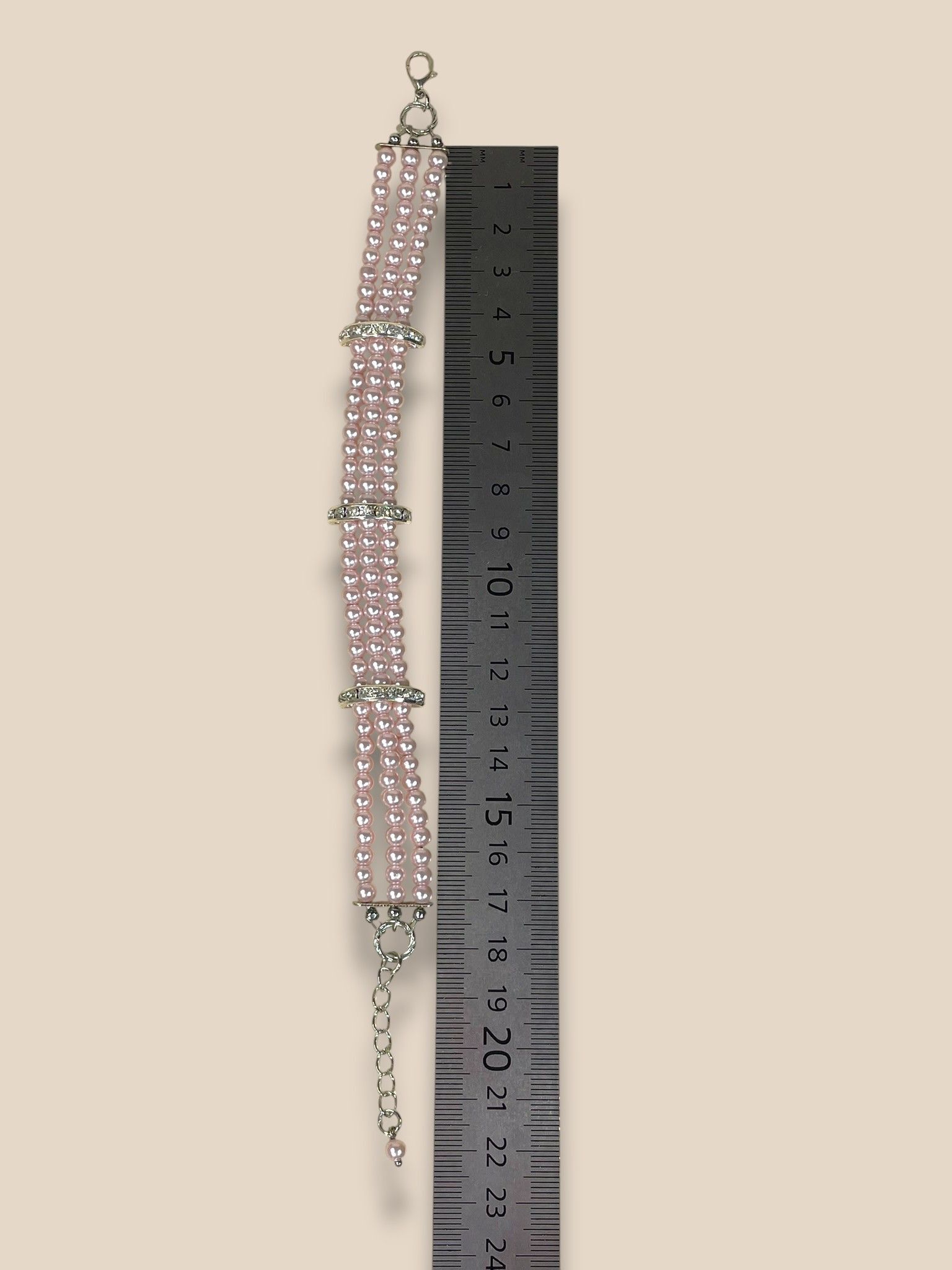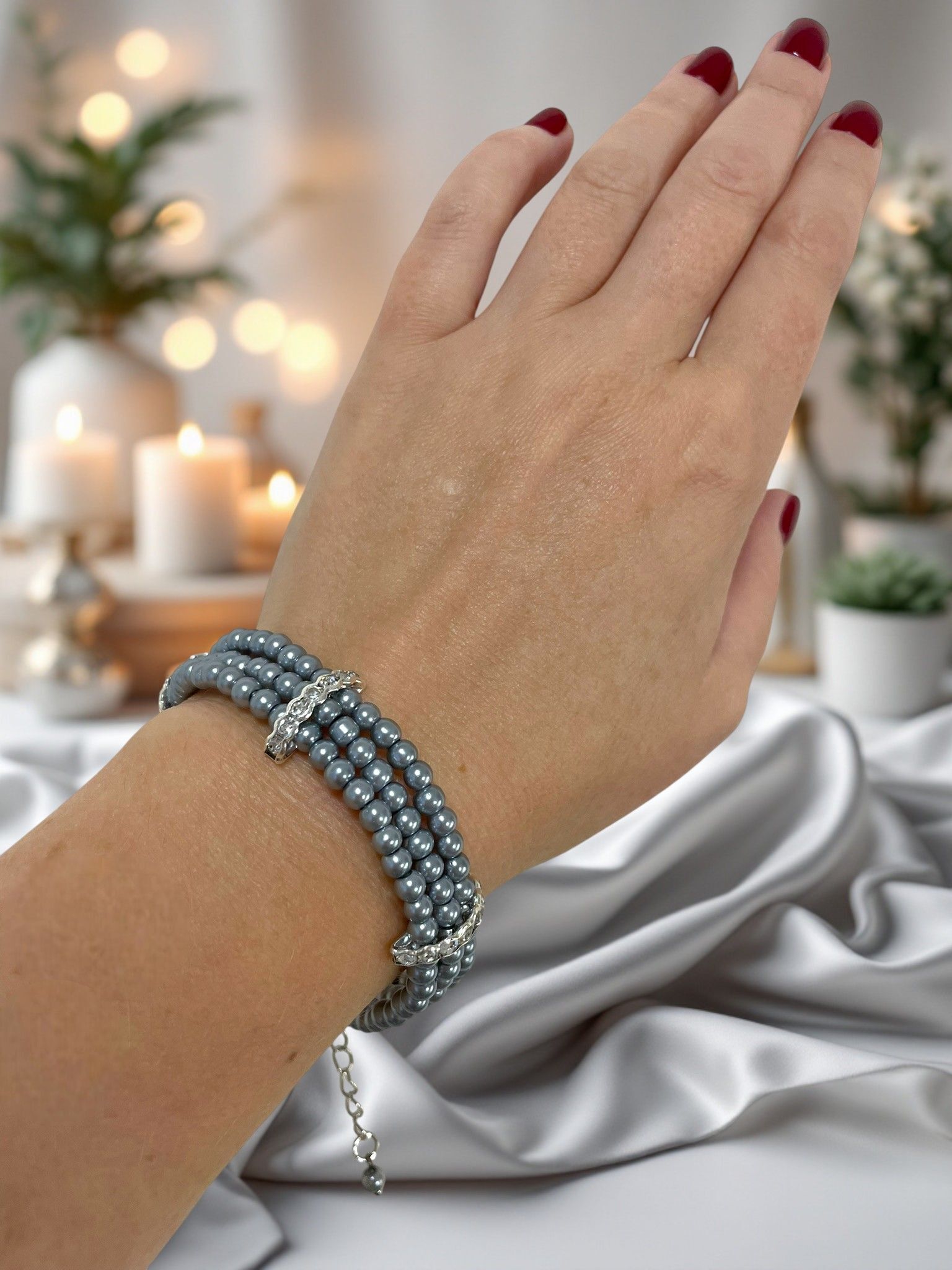 - Дизайн: трёхрядный, с изящным переплетением бусин, создающим объёмный и стильный акцент на запястье.
