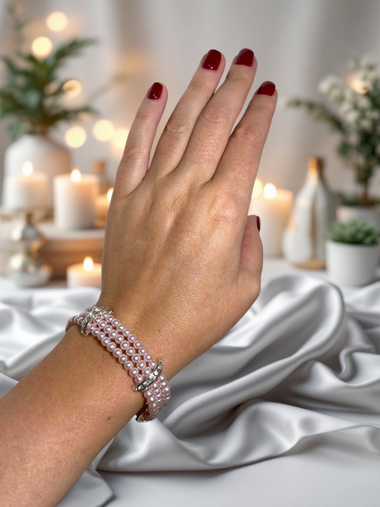 Элегантный браслет из искусственного жемчуга станет изысканным дополнением к вашему образу. Выполнен из высококачественного стекла и перламутра, что придаёт украшению благородный блеск и утончённость.