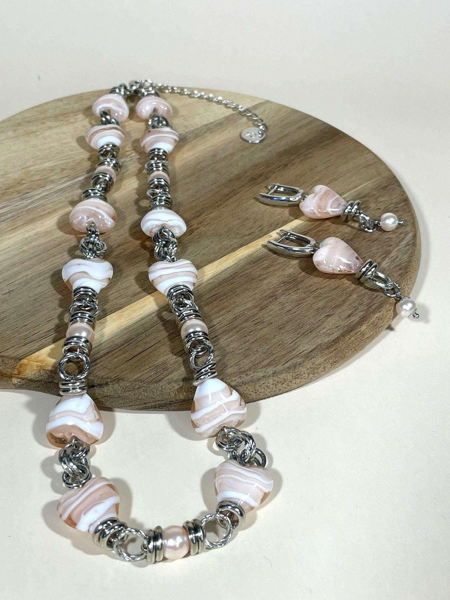 - Бусины из муранского стекла придают украшению особый шарм — их глянцевая поверхность переливается на свету, создавая эффект драгоценного камня.