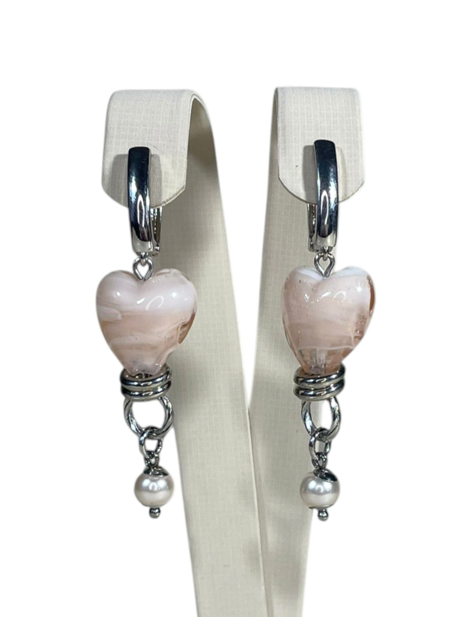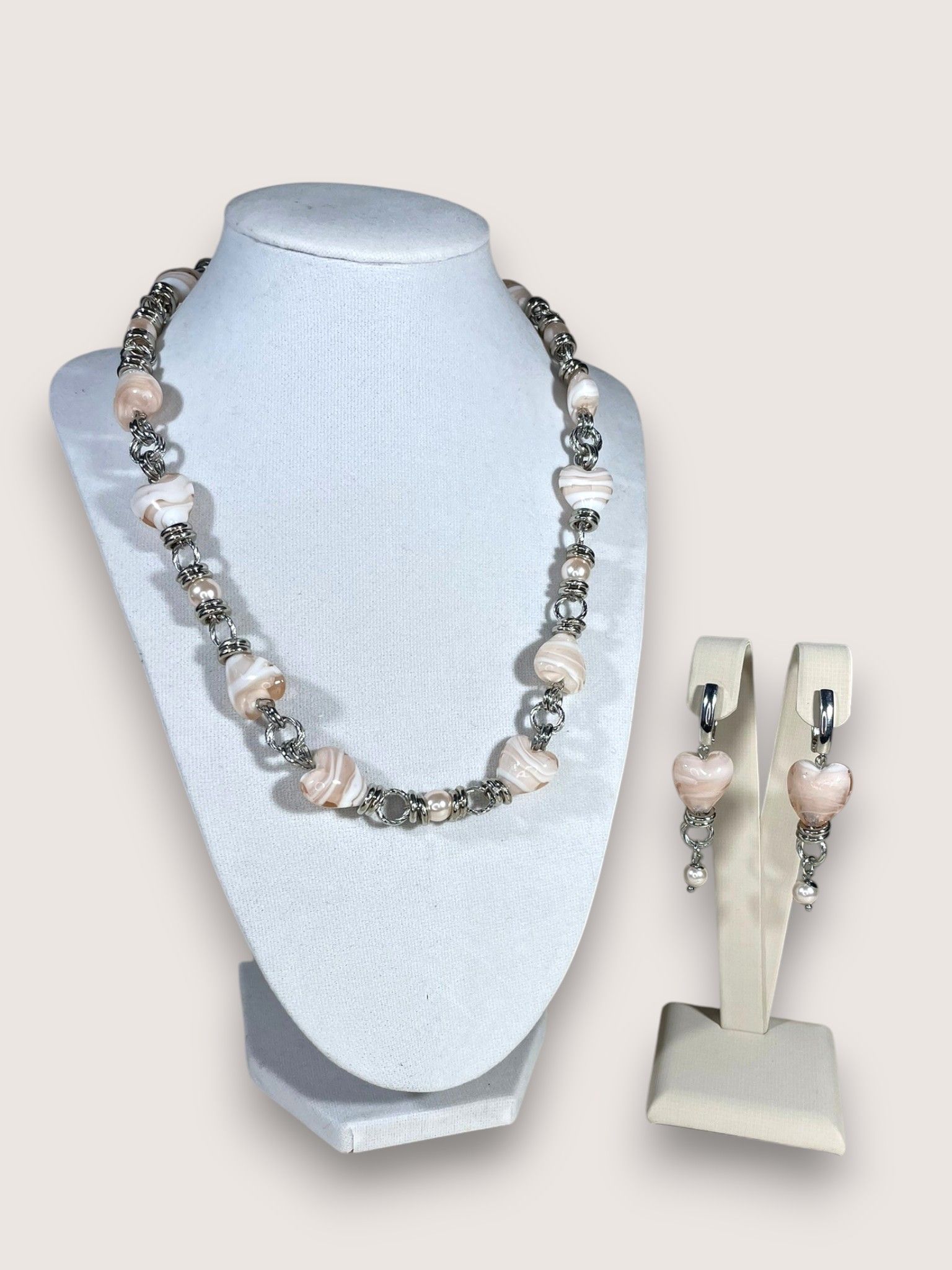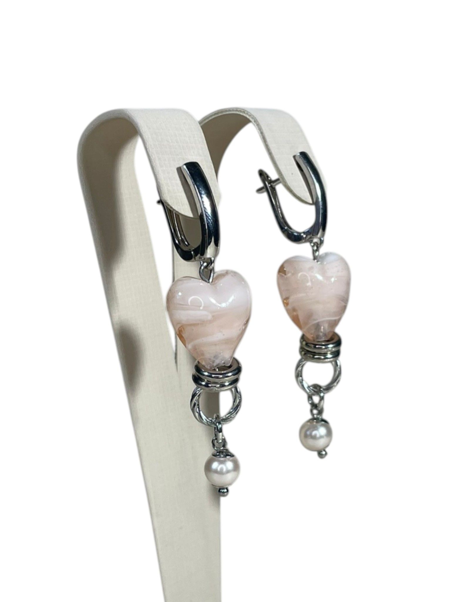 - Серьги: дополняют колье, повторяя его дизайн. Каждая серьга украшена крупной бусиной из муранского стекла, обрамлённой фурнитурой из бижутерного сплава. Длина серёг — 5 см, что делает их универсальными: они не выглядят громоздко, но при этом привлекают внимание.