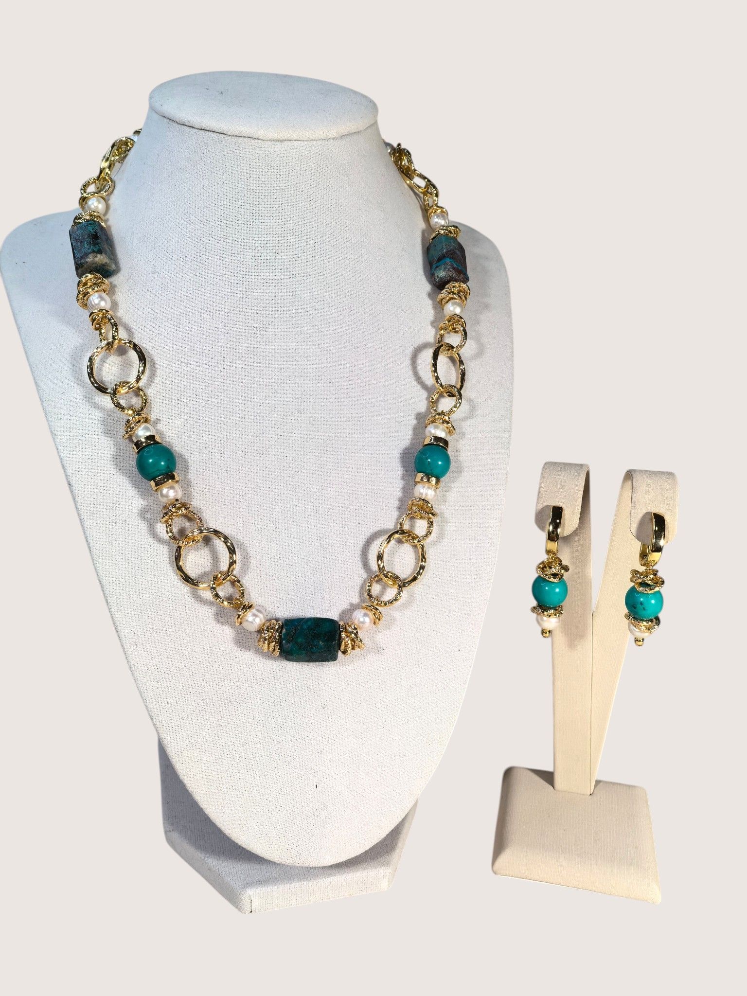 Откройте для себя очарование природы с изысканным комплектом украшений, сочетающим красоту натуральных камней и утончённость ювелирного искусства.