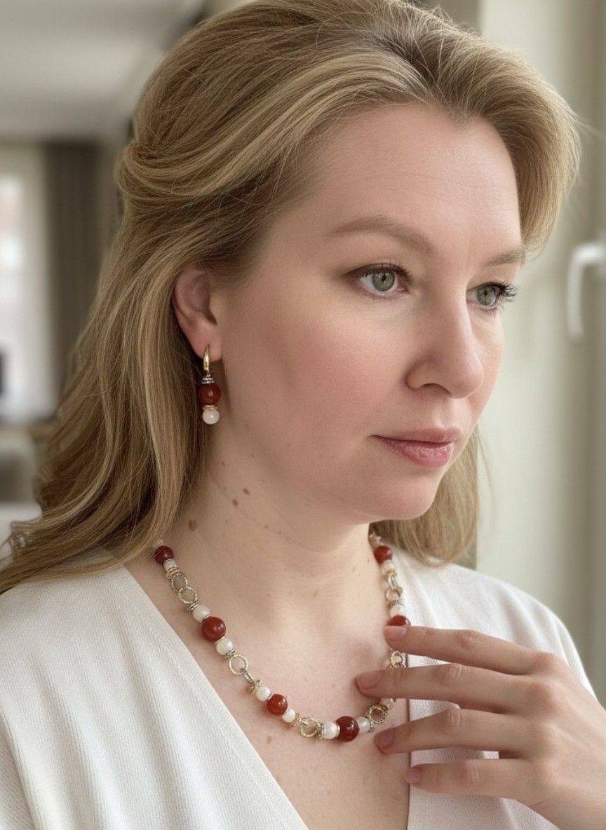 - Натуральные камни (сердолик, оникс) не только украшают, но и обладают особой энергетикой — сердолик дарит оптимизм, а оникс защищает от негативных воздействий.