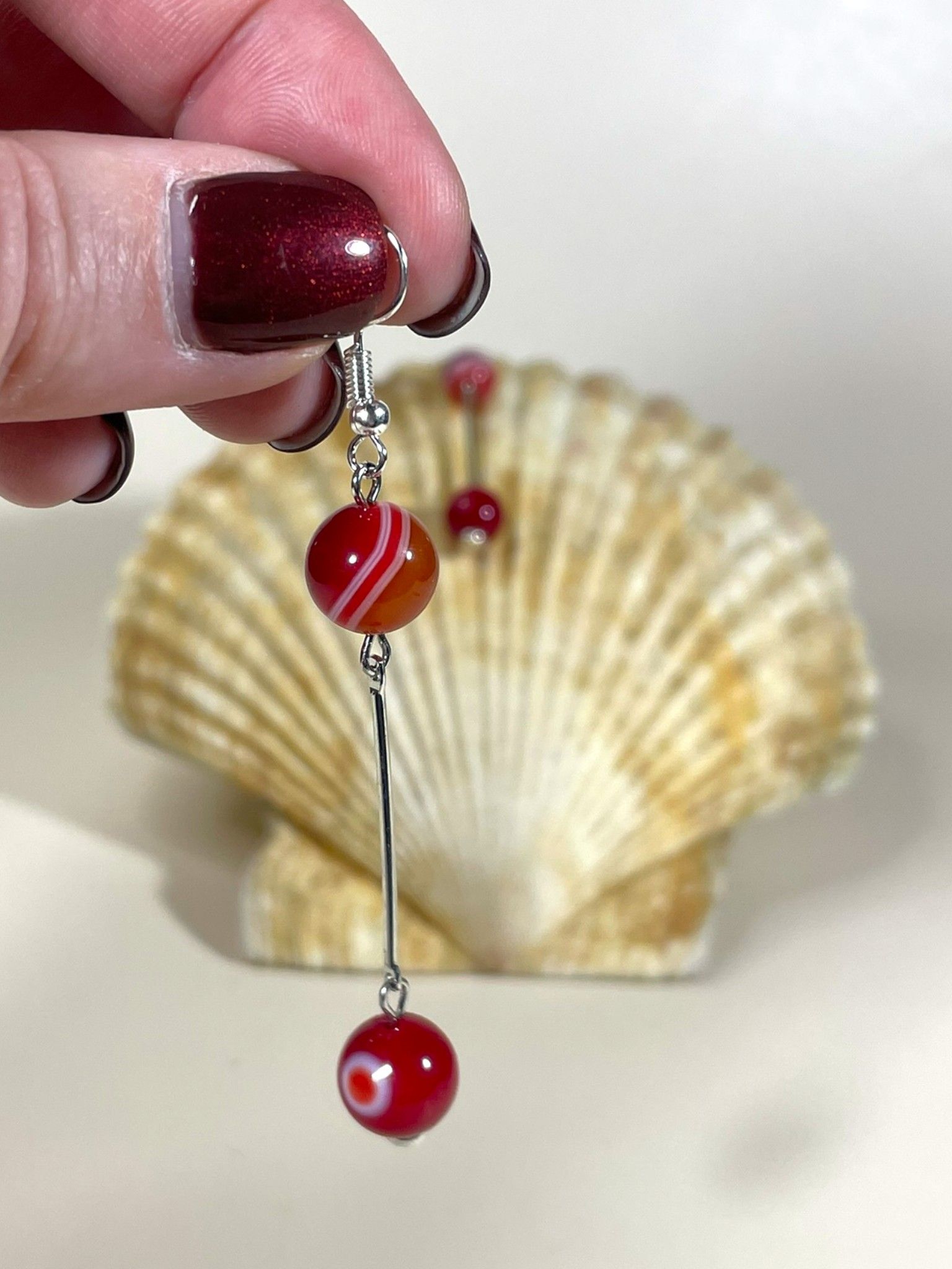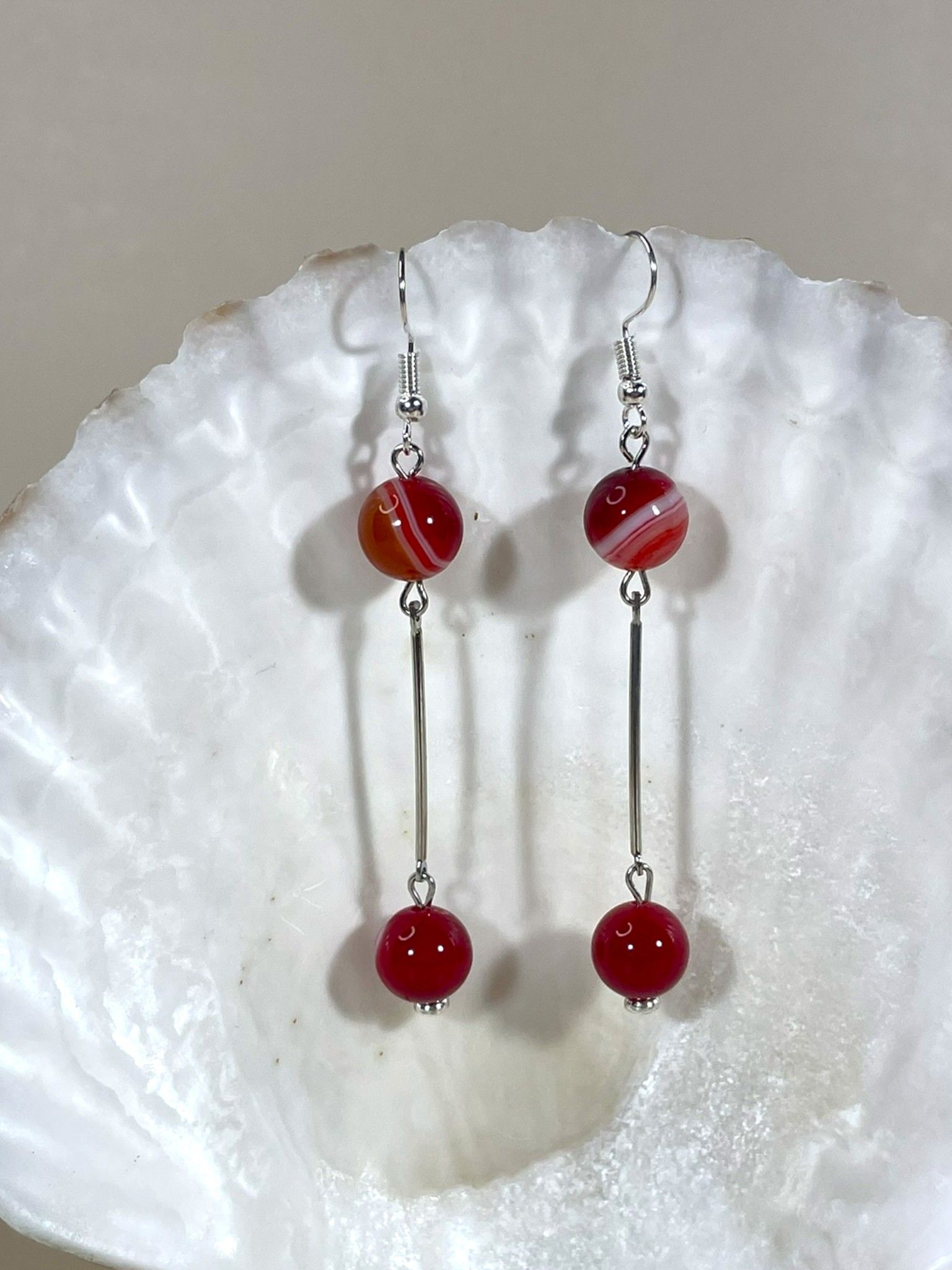 - Камень: агат— камень красного с цветными полосками цвета, который завораживает своей нежностью и прозрачностью. Его красный оттенок придаёт украшению особый шарм.