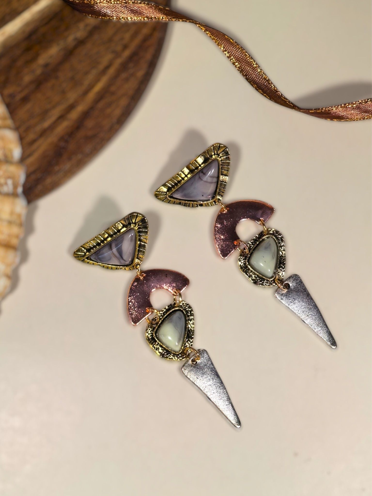 Серьги в этническом стиле: смелое сочетание акрила и бижутерного сплава.