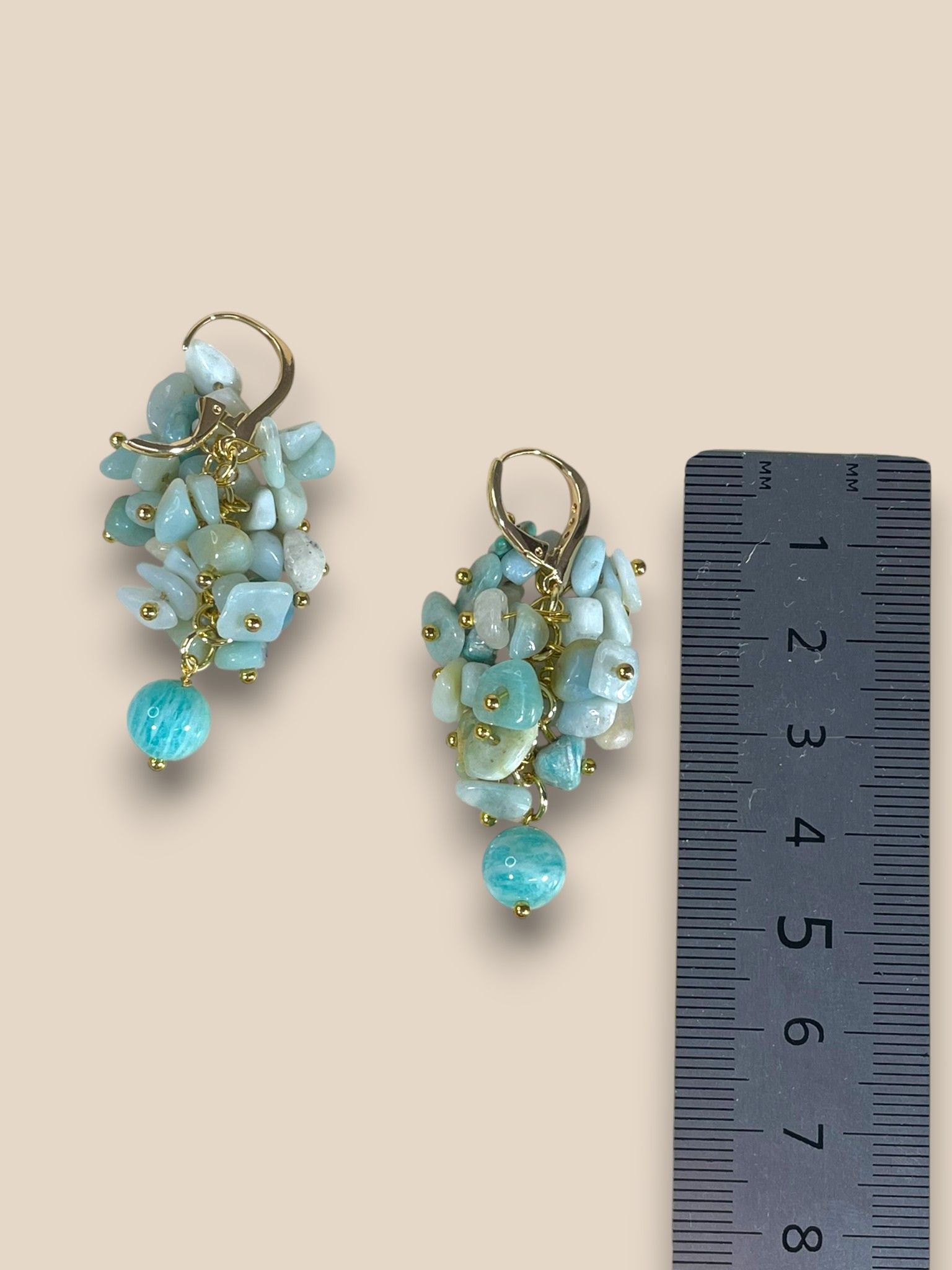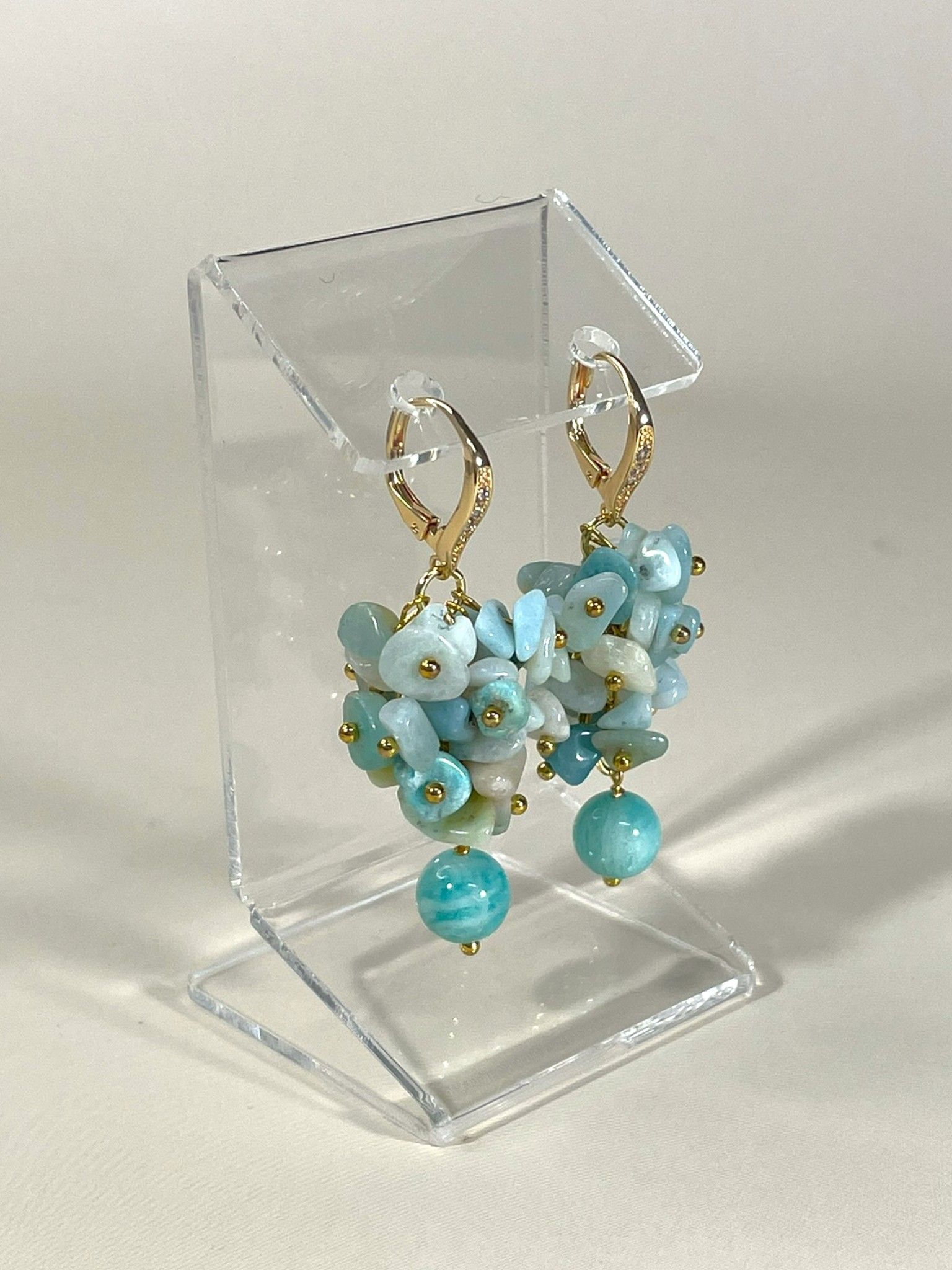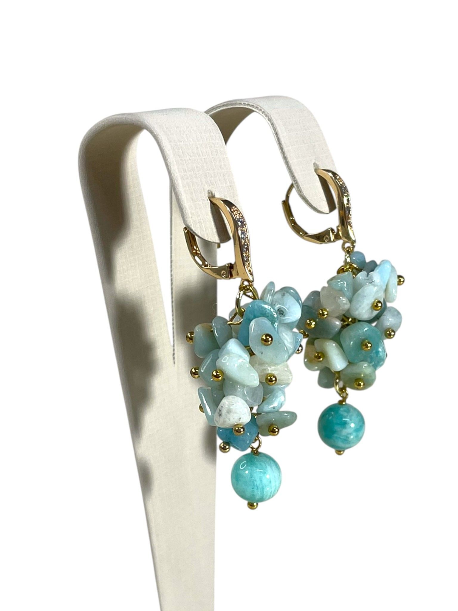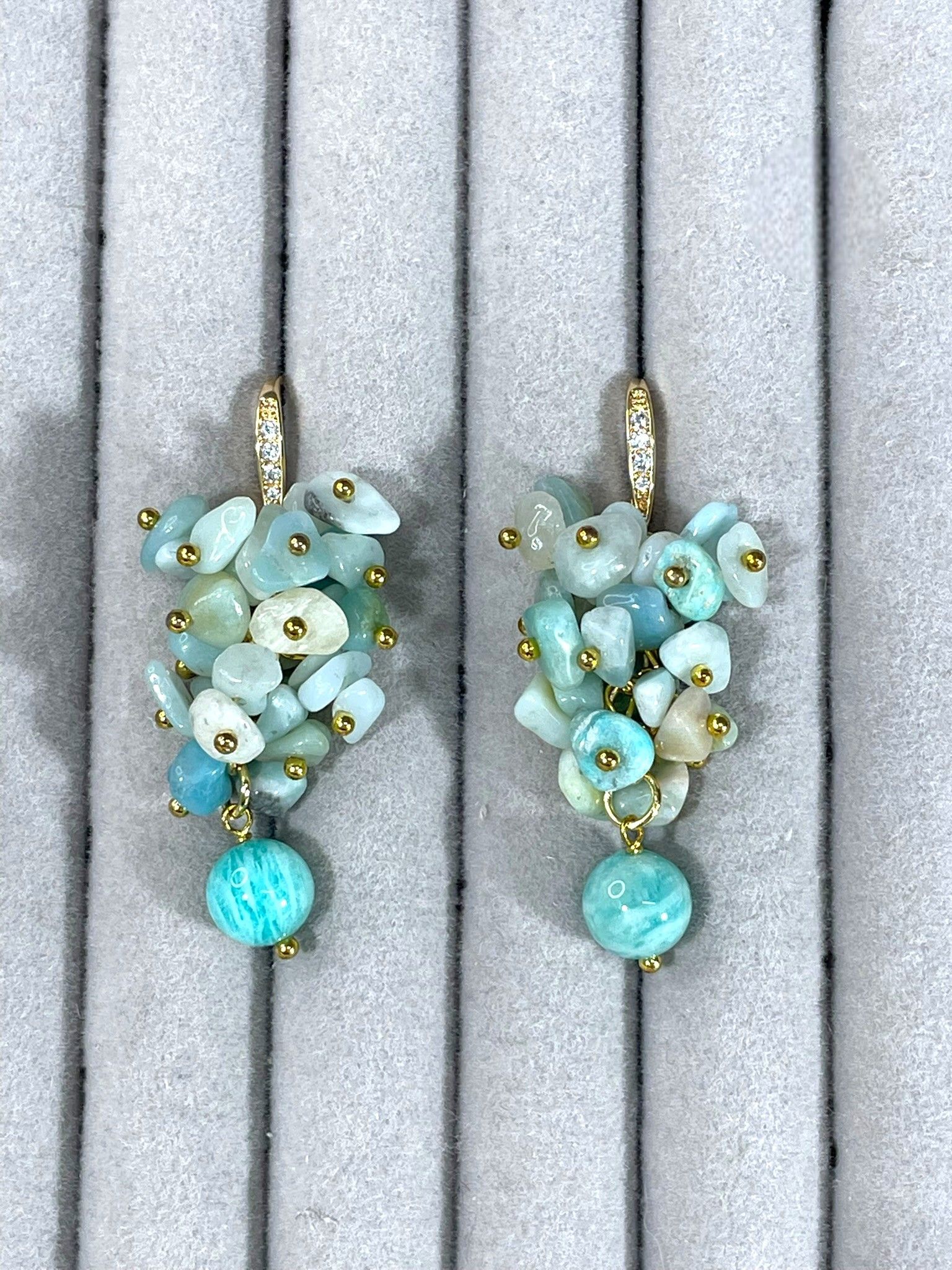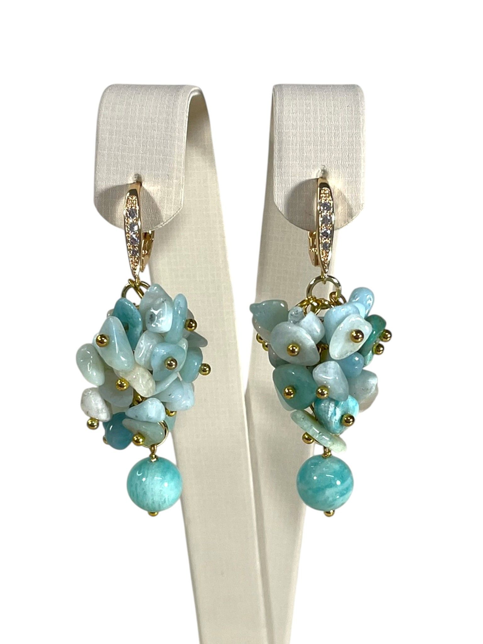 Серьги грозди из Амазонита и фианиты