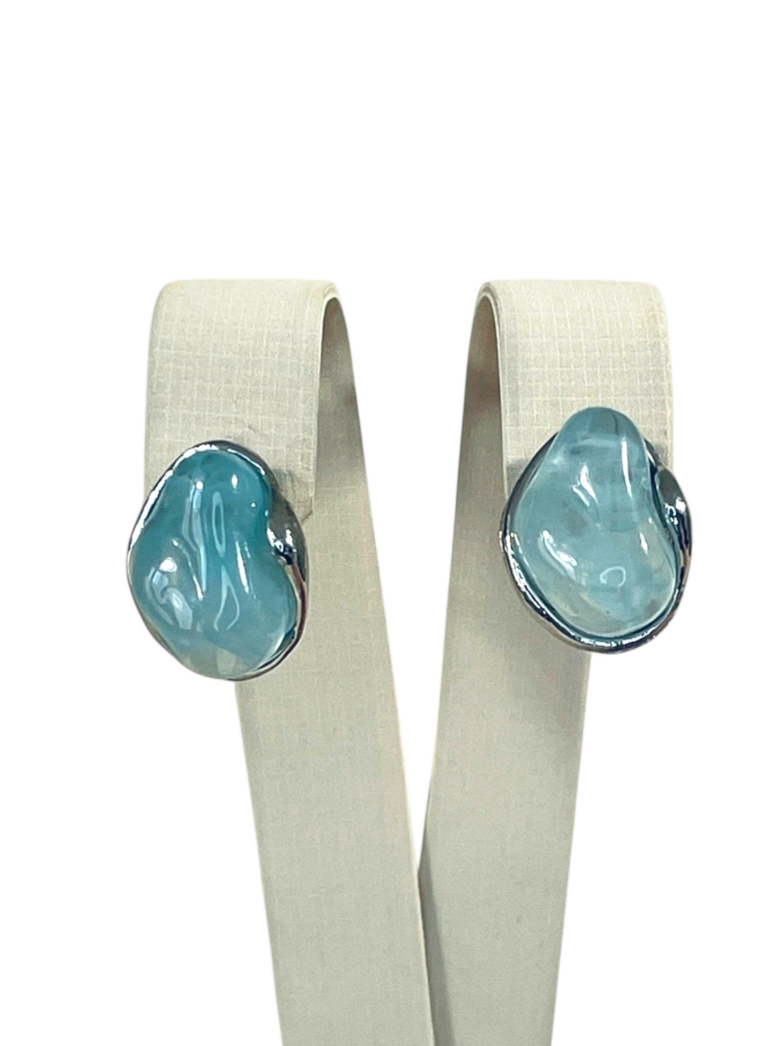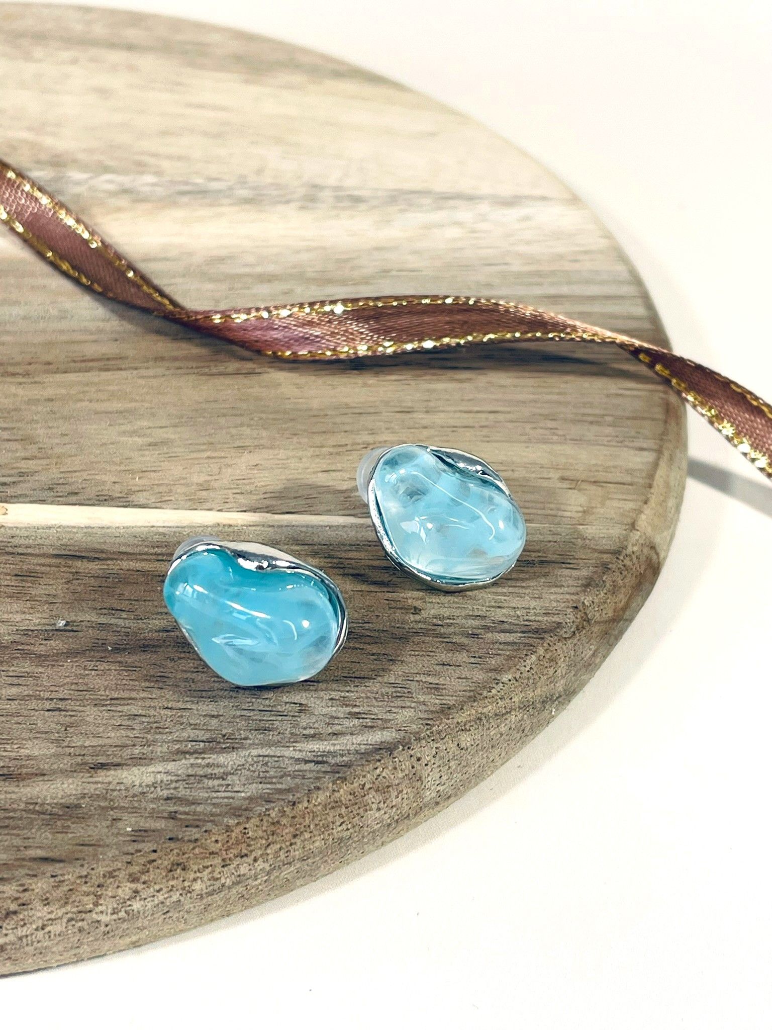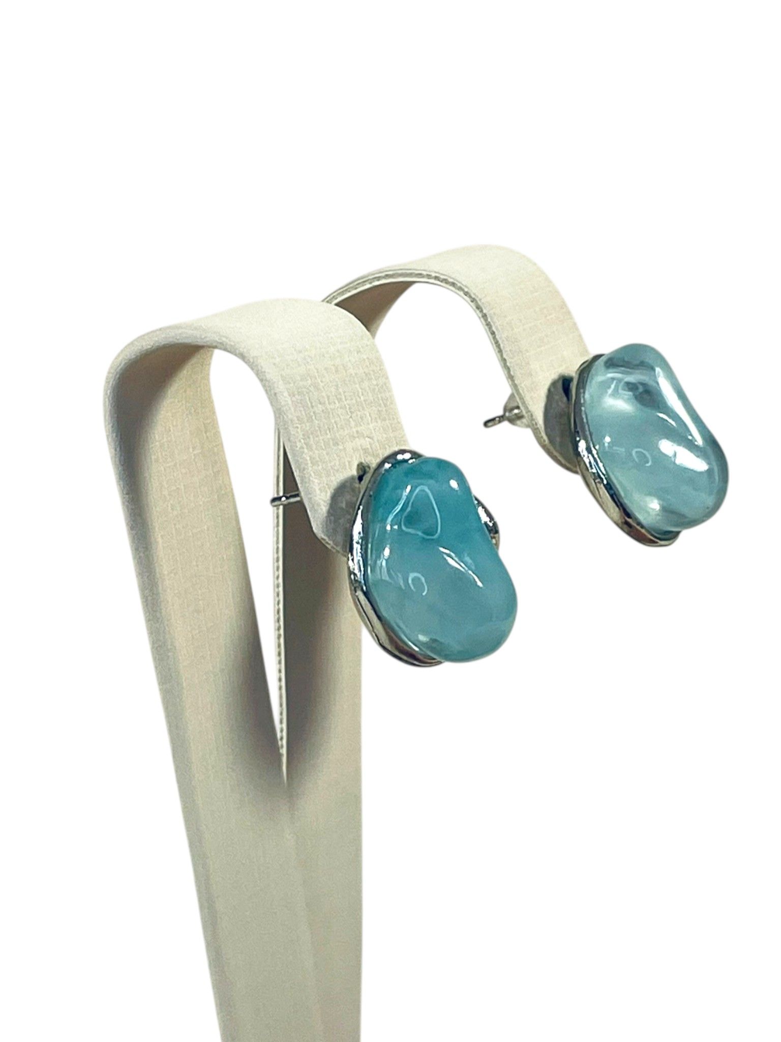 - Цвет: нежный бирюзово-голубой, напоминающий цвет морской волны. Полупрозрачная структура создаёт эффект глубины, будто в серьгах застыла капля воды. Оттенки варьируются от светло-голубого до насыщенного бирюзового, что делает каждую пару уникальной.