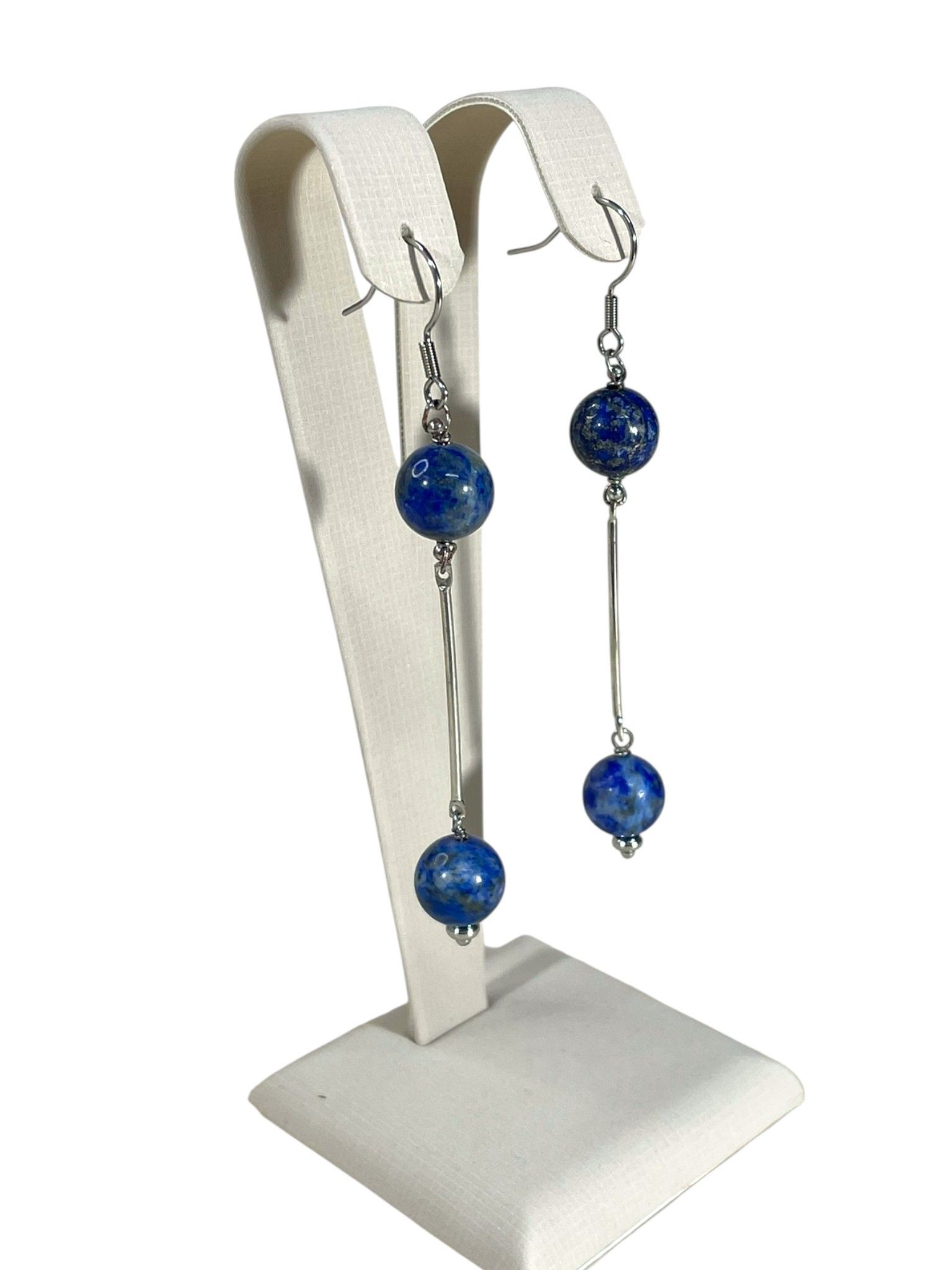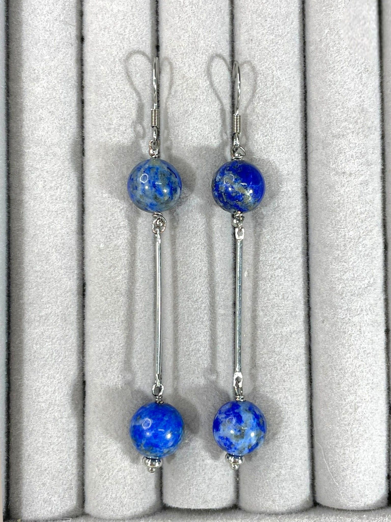 Серьги с натуральным лазуритом — это изысканное украшение, которое подчеркнет вашу индивидуальность и стиль. Основной акцент сделан на крупных круглых бусинах из лазурита насыщенного синего цвета.