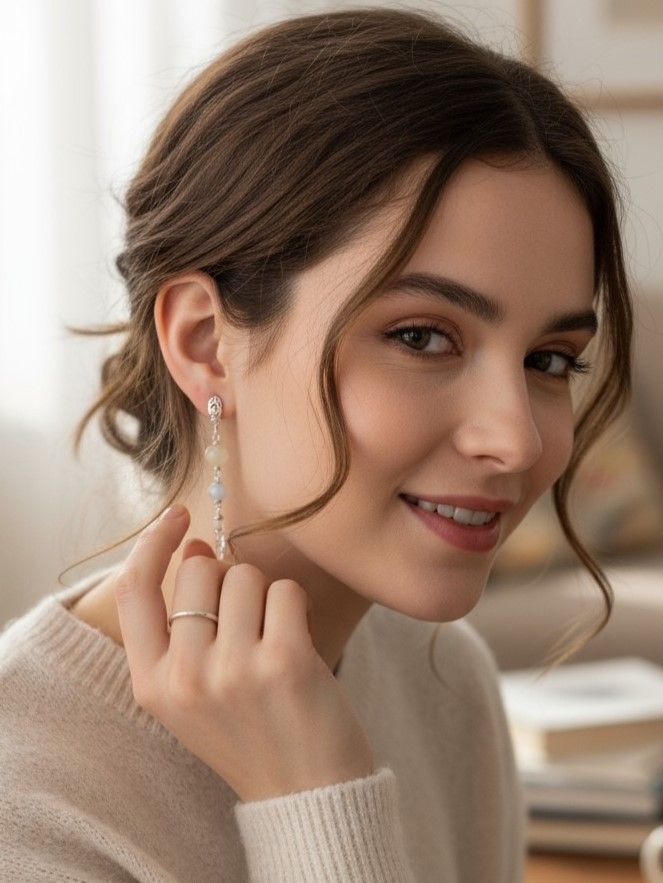 - Длинные серьги, которые визуально удлиняют шею и добавляют образу грации.