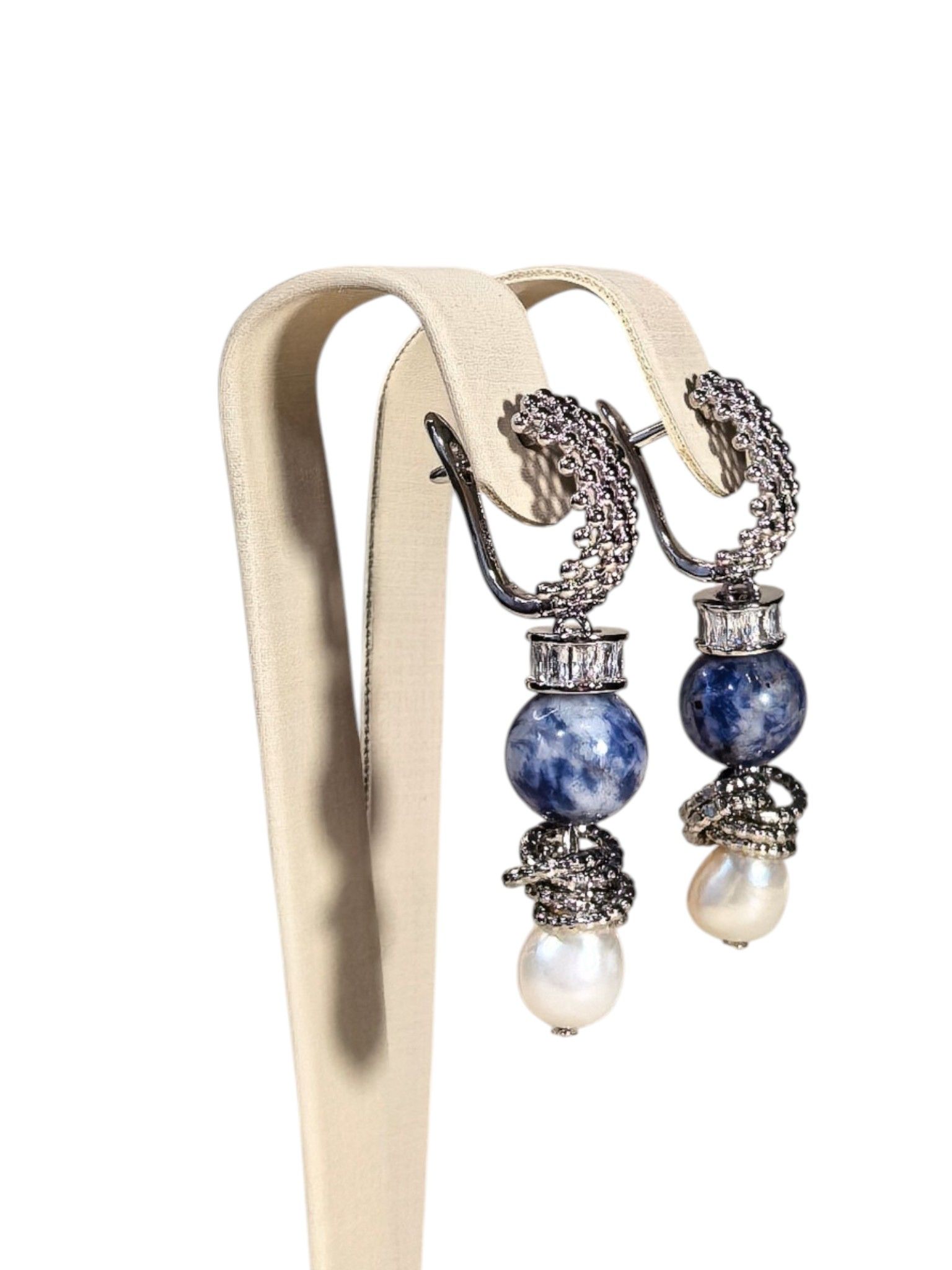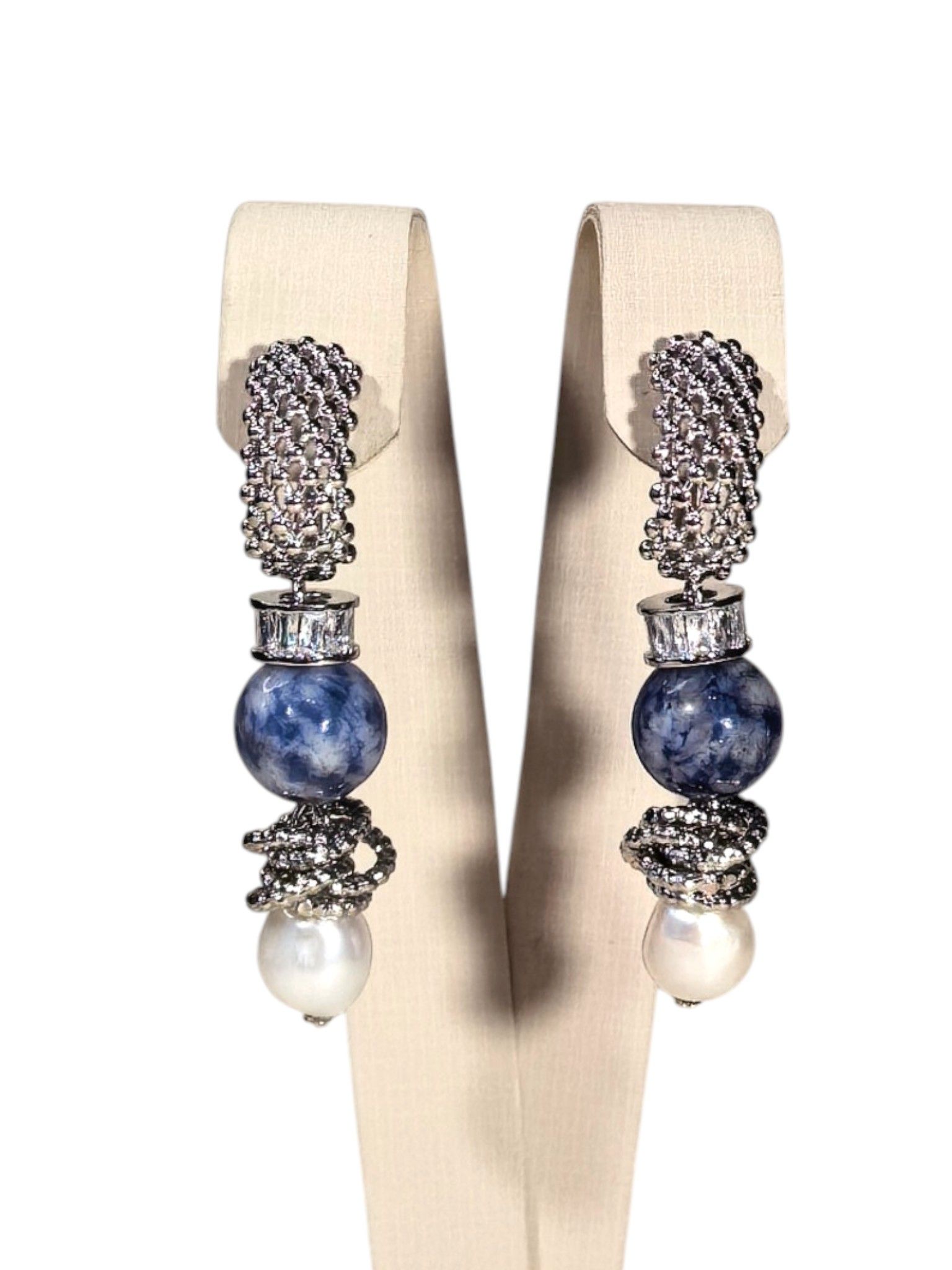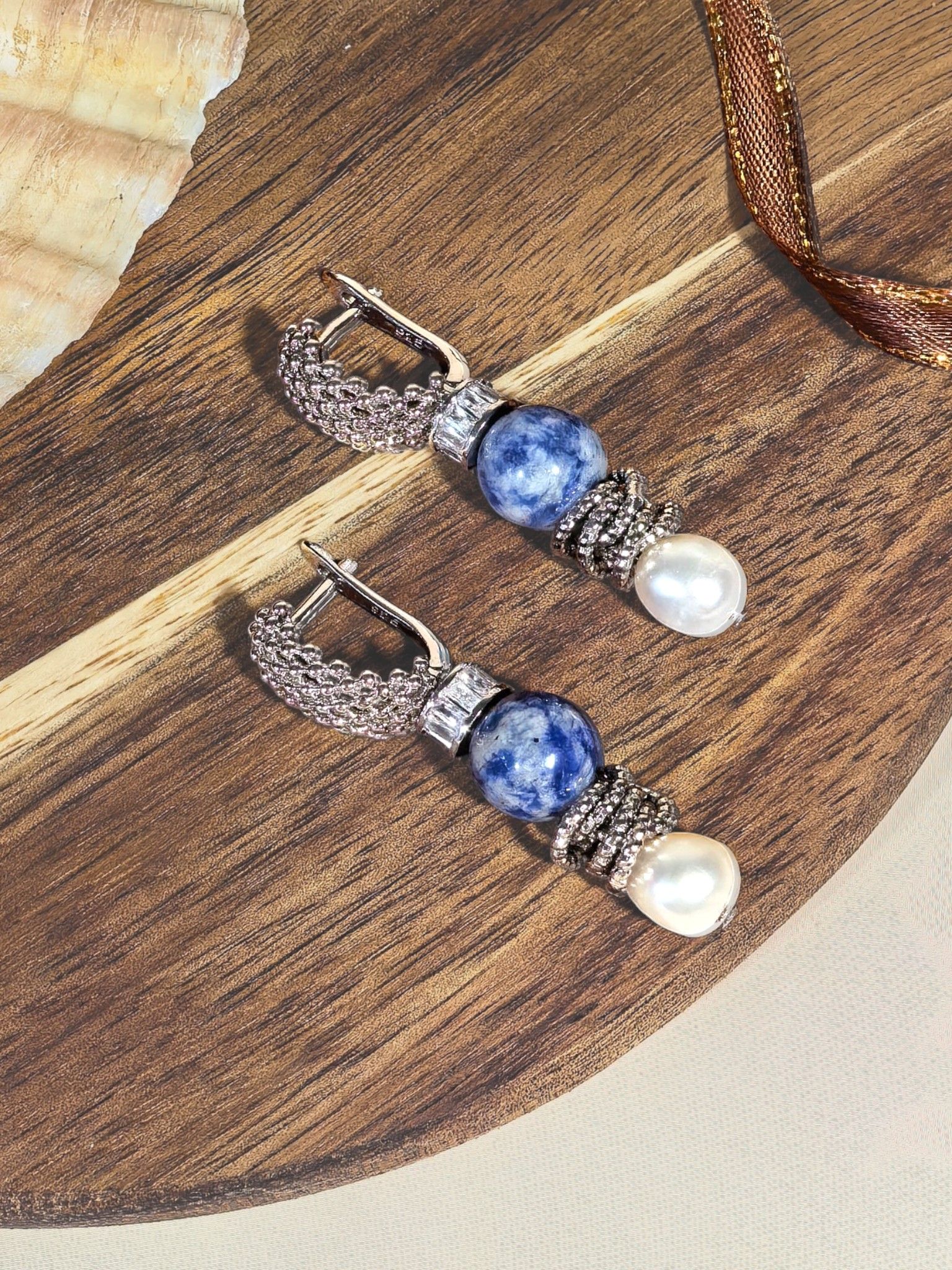 Серьги с содалитом и жемчугом: гармония стиля и природной красоты.
