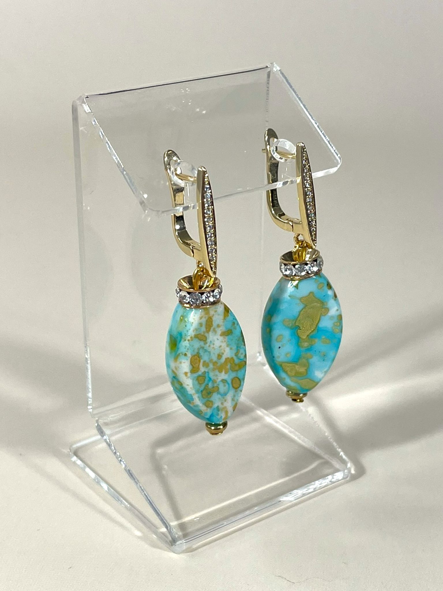 Серьги бижутерные. Фурнитура имеет покрытие, выполнена из гипоаллергенного сплава. Бусины изготовлены из французского полимера