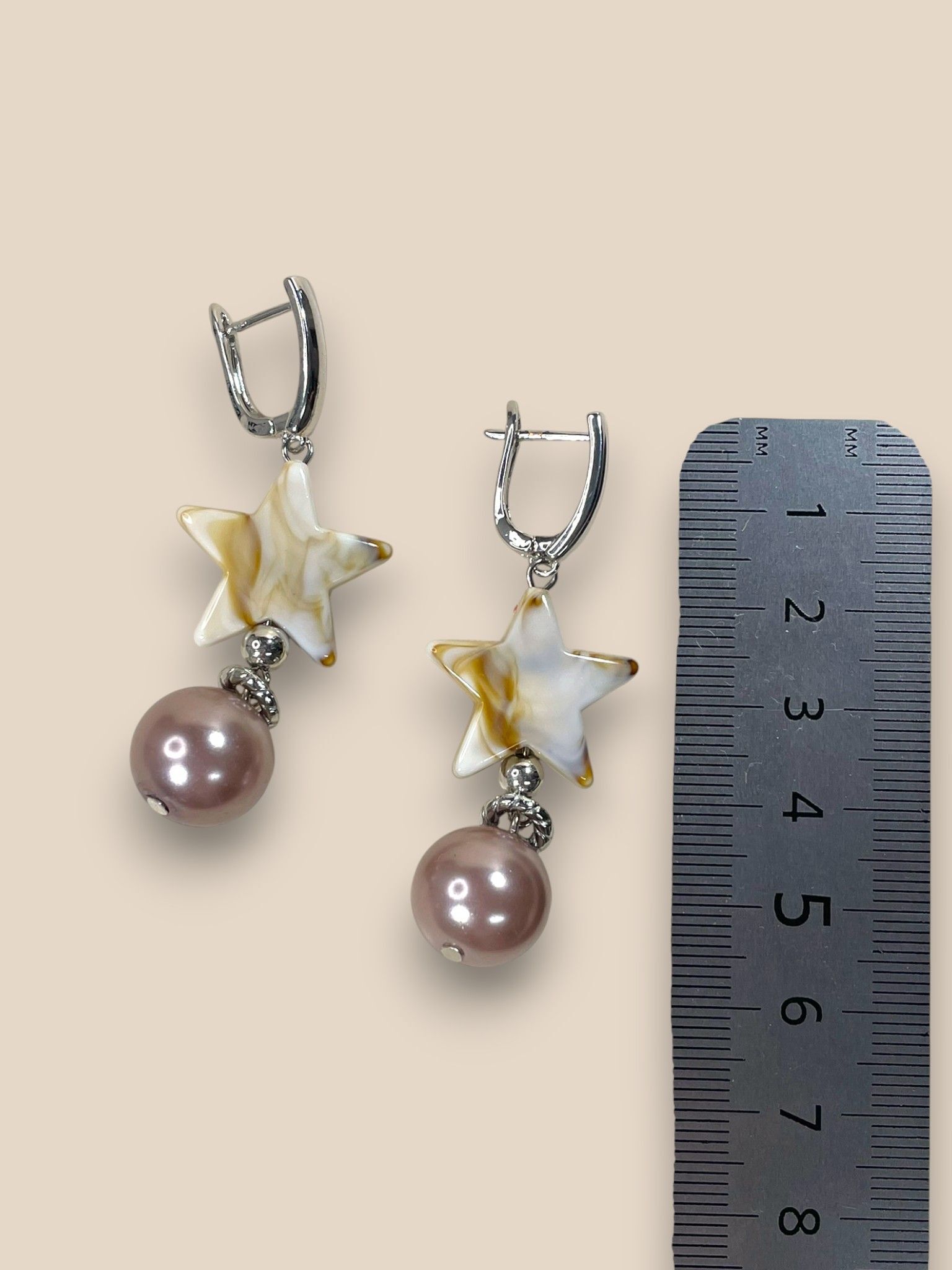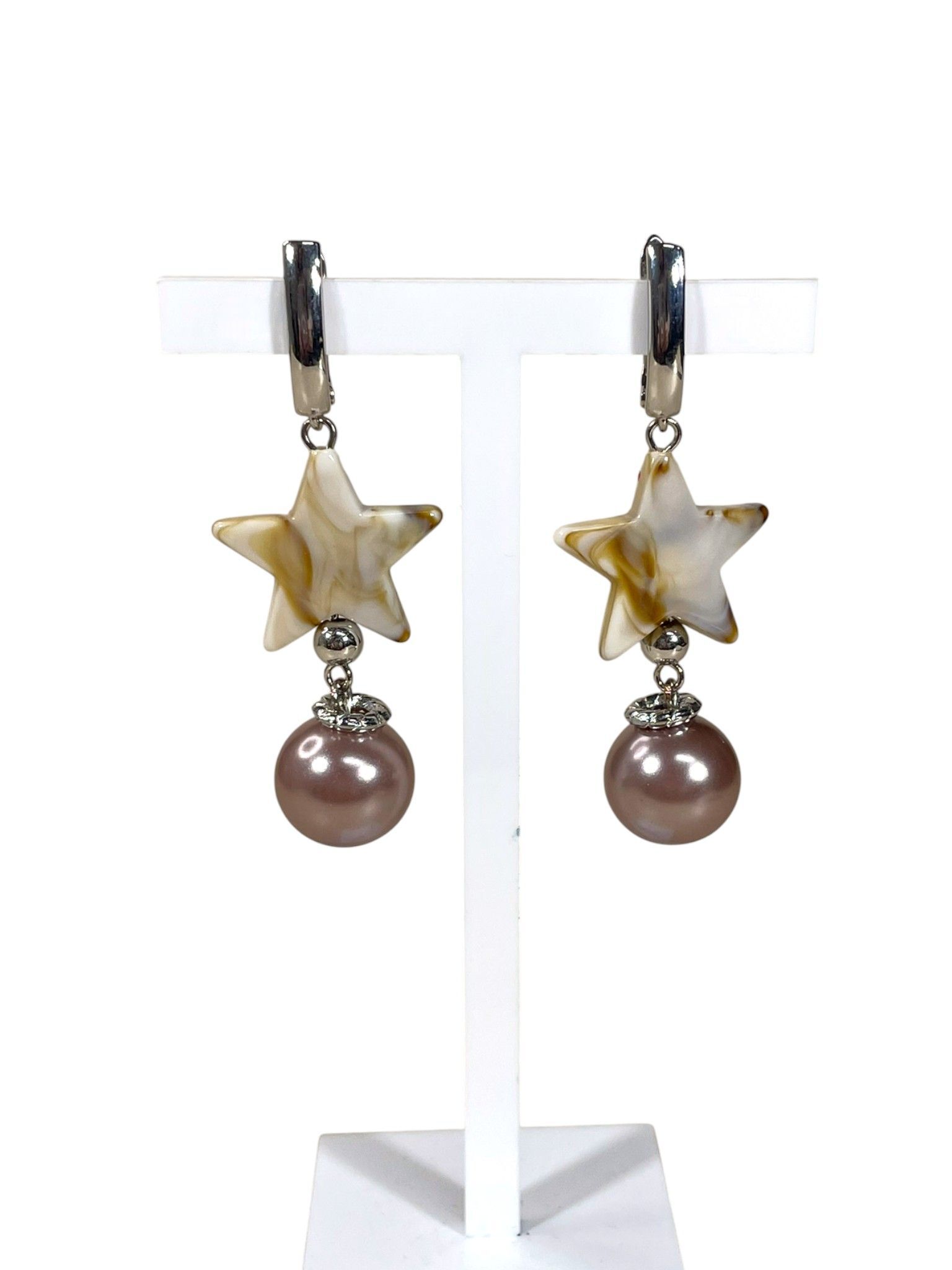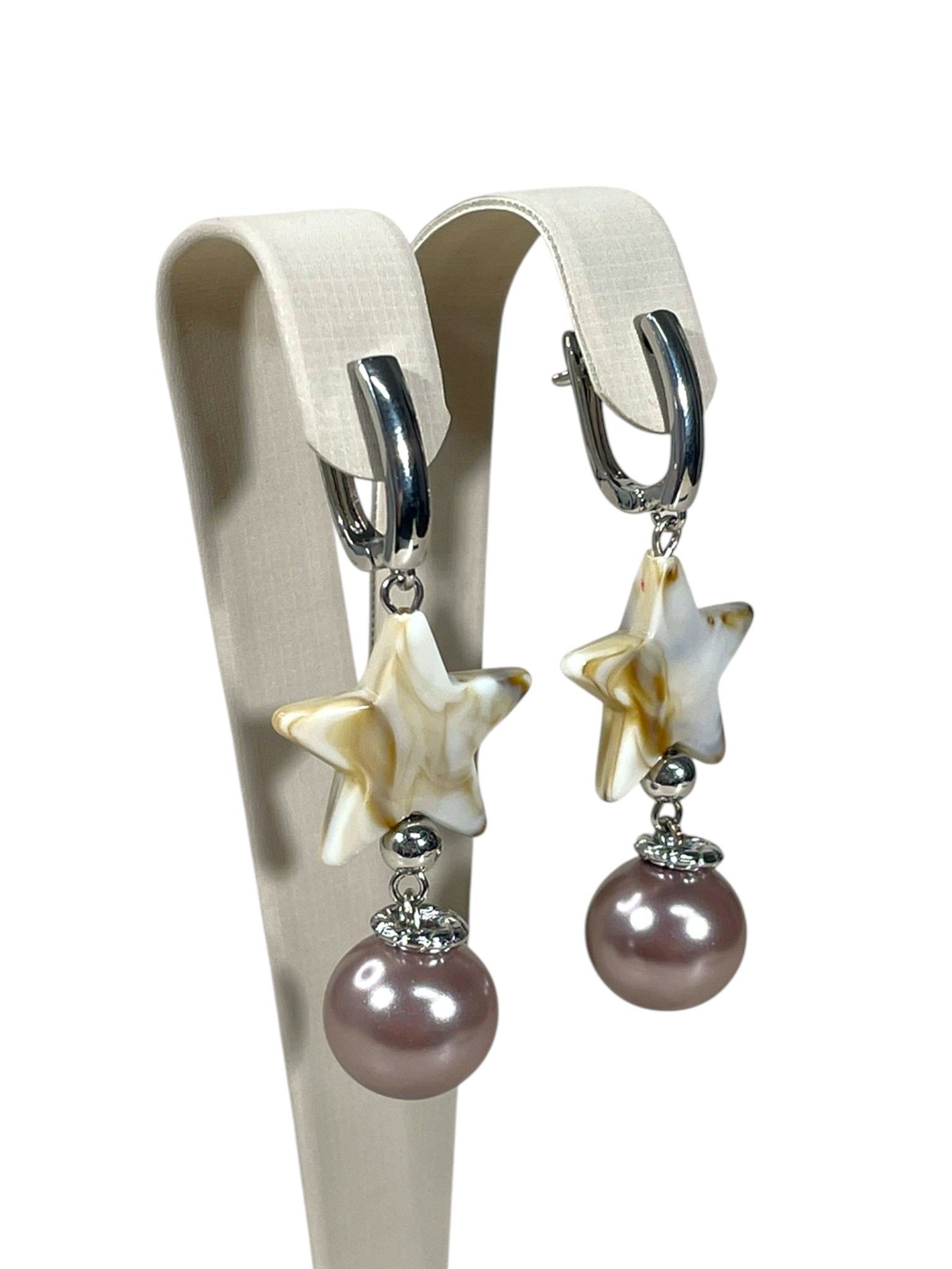 Серьги бижутерные. Фурнитура имеет покрытие, выполнена из гипоаллергенного сплава. Бусины изготовлены из полимера и искусственного жемчуга