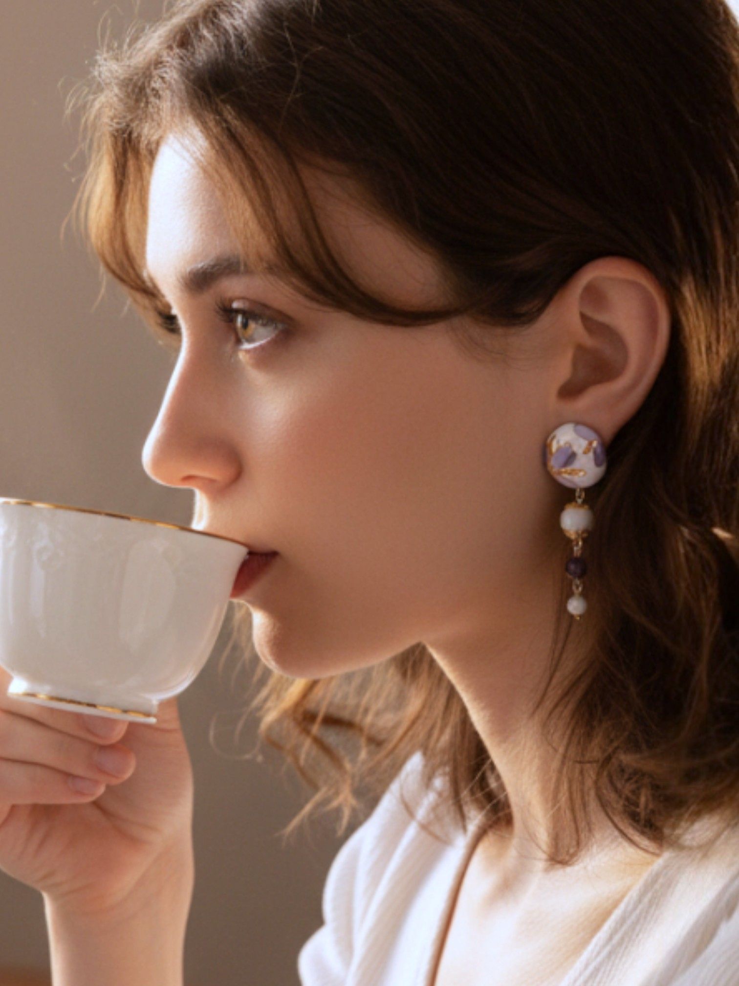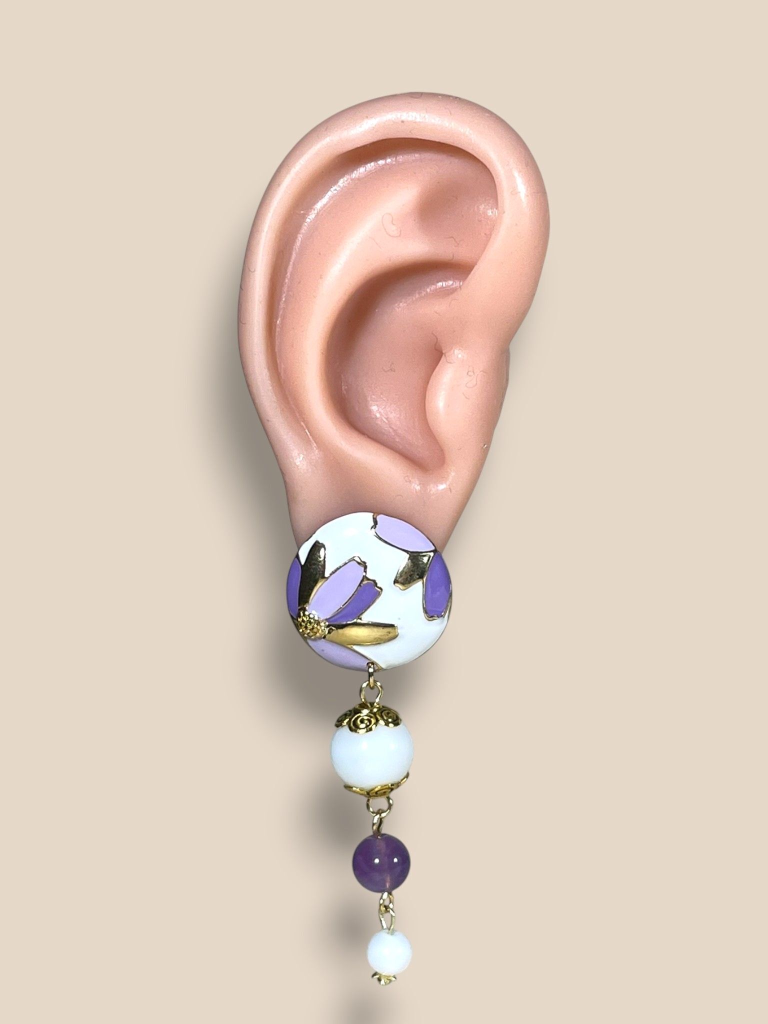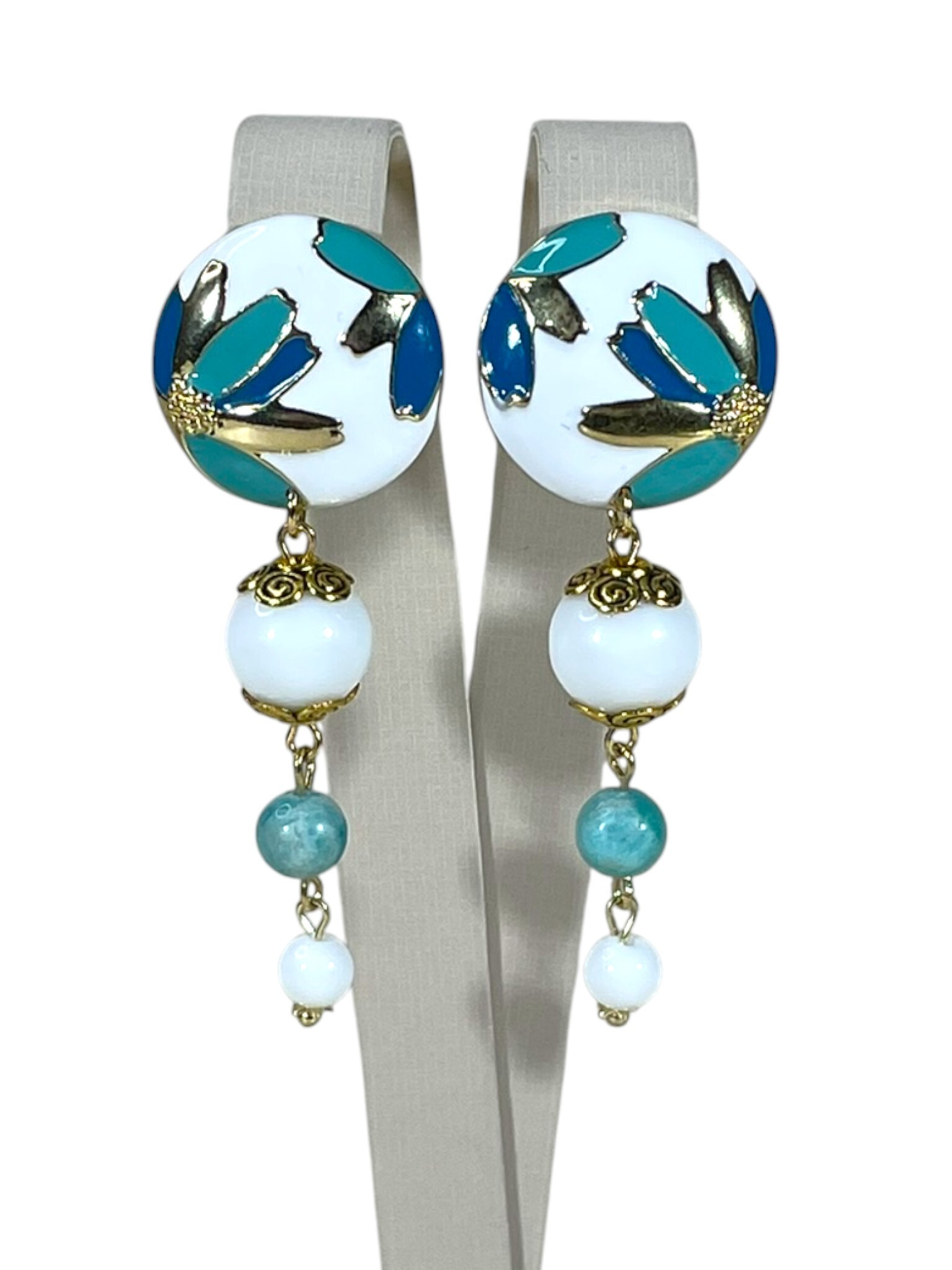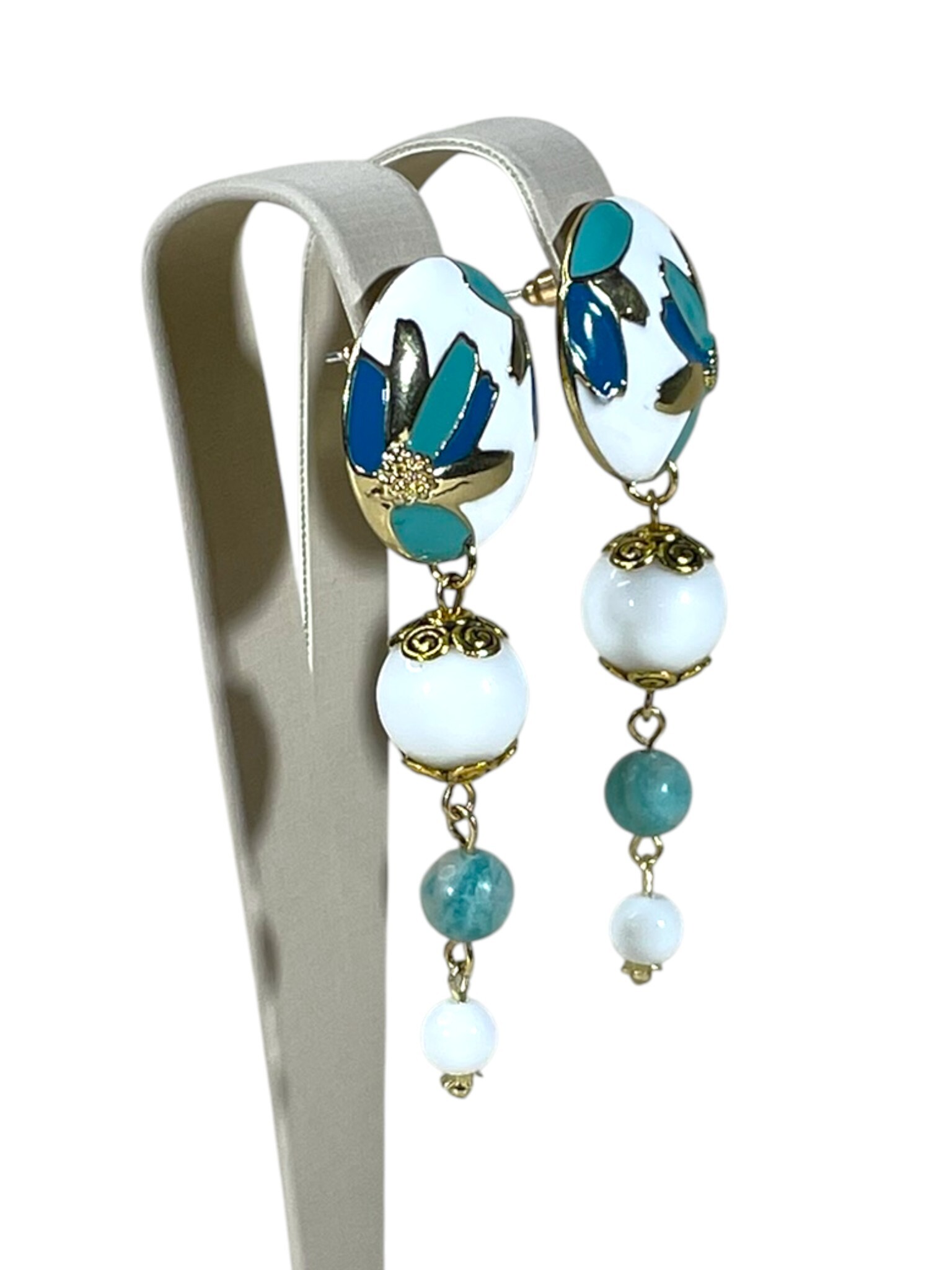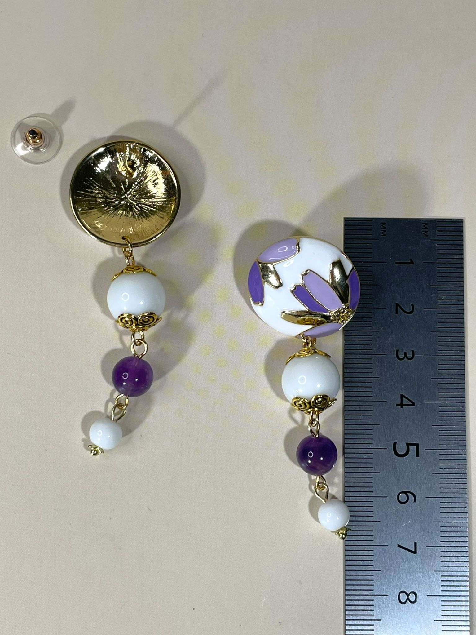 Композицию дополняют маленькие белые бусины агата, придающие серьгам лёгкость и воздушность.