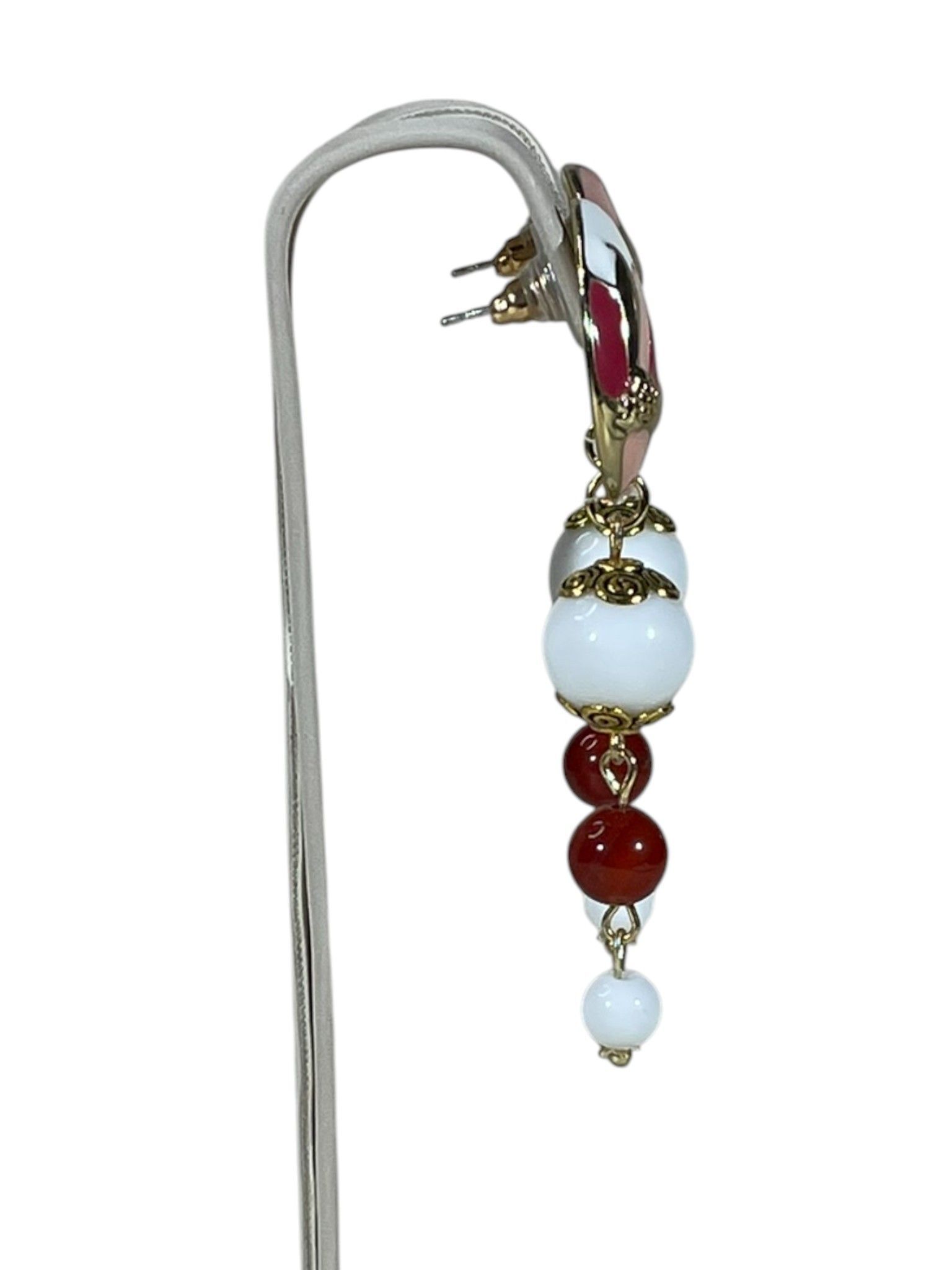 Завершающий акцент — бусина из сердолика насыщенного красного оттенка, которая гармонично сочетается с остальными элементами.